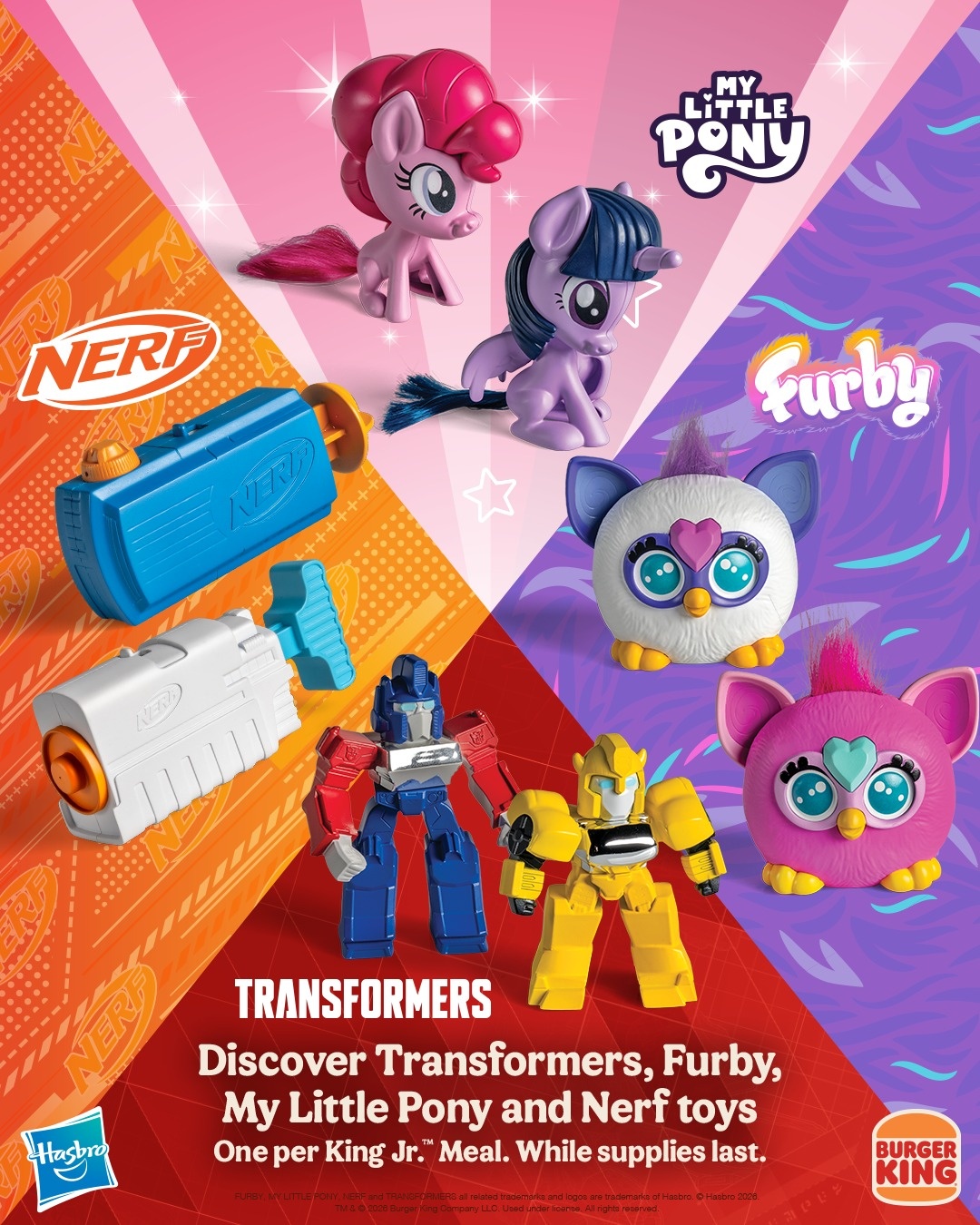 Drive your fat autistic asses to Burger King RIGHT THE FUCK NOW. G4 Merch comes with kids meals in 2026. Had to do a double take. Heres a script: >Hello>Yes, I'd like a kids jr meal with a girl toy Thats all, anything more is autism and you will be labeled a weirdo. They have Twilight (+wings) and Pinkie. Who knows if they sell enough of these things they might make more. Its not over yet bros..Thread music: https://www.youtube.com/watch?v=96ovWzc3oB4&list=RD96ovWzc3oB4&start_radio=1