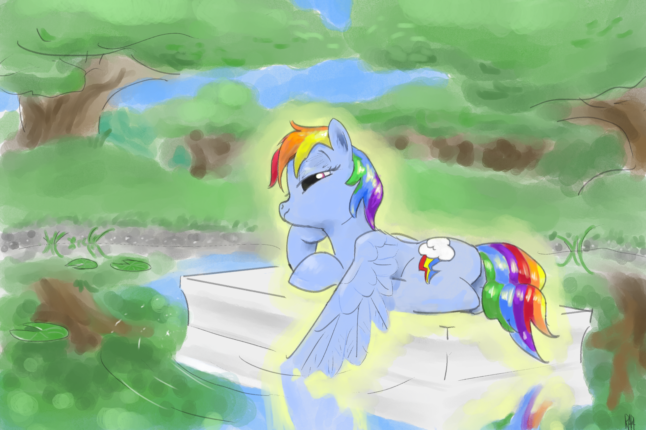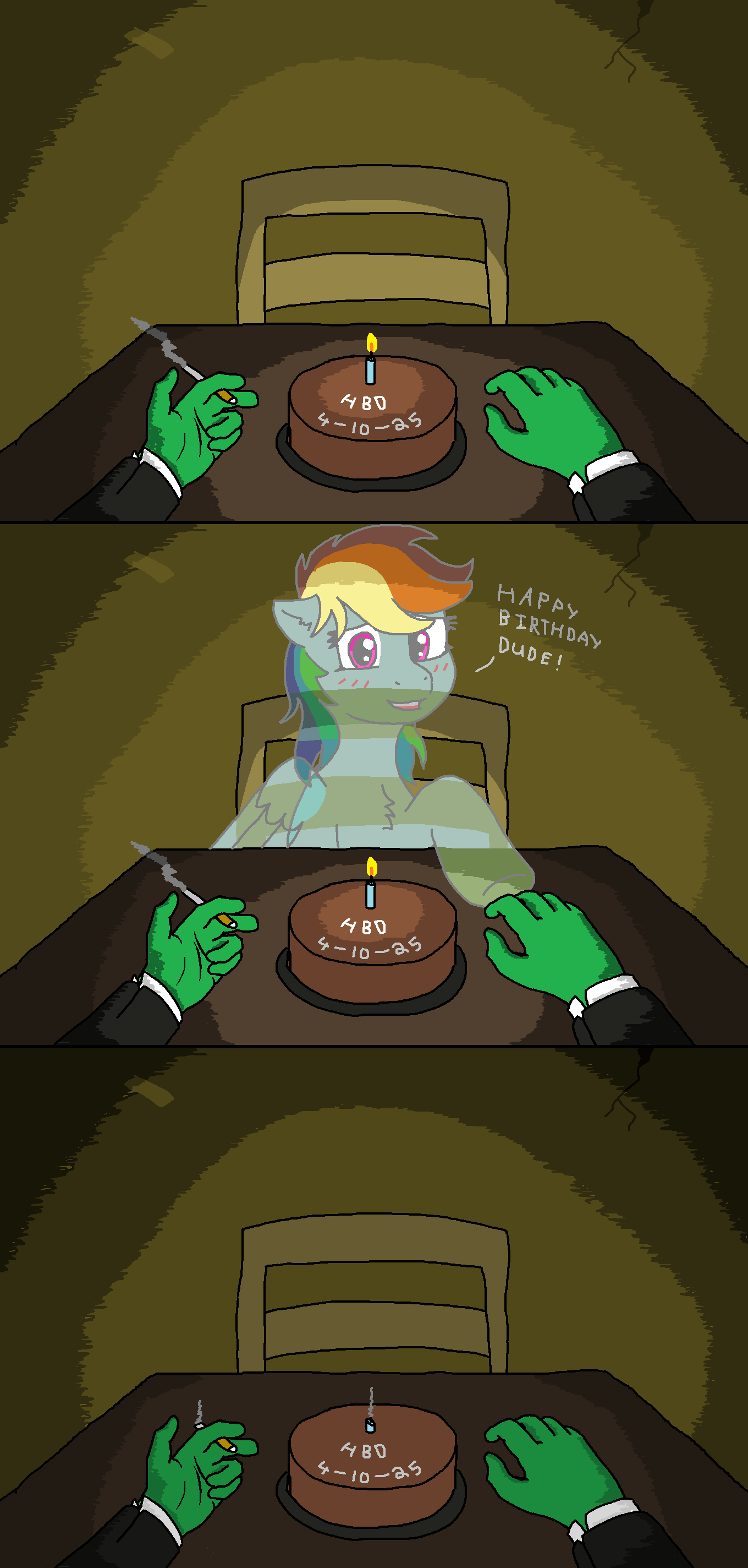 Sorry, no greens today. My head feels empty. Having no ponies, or Rainbow Dash made things hard. Better to be alone than haunted by imaginary things.