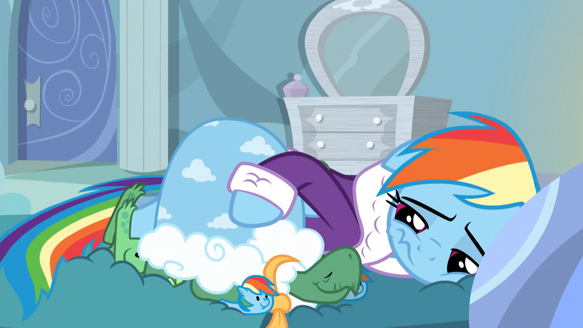 I like to imagine that when Rainbow Dash gets sick, her colors, usually so bright and vibrant, become dull and faded