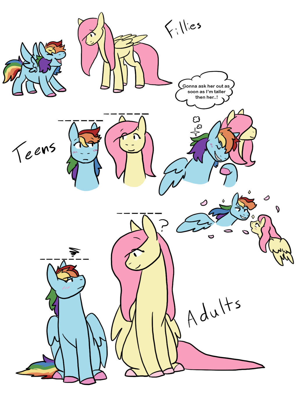 >>43171810As an aside, I don't understand artists who draw Fluttershy as "short", or at least shorter than Dashie. Fluttershy is genuinely a modeling-tier pony which means she has a tall, lean physique. She should comparatively be one of the tallest standard female ponies, especially compared to her friends.Meanwhile Dashie is best when she's a speed gremlin flying at incredibly high speeds due to her small, aerodynamic stature (and also because her growth was stunted since she was born prematurely).
