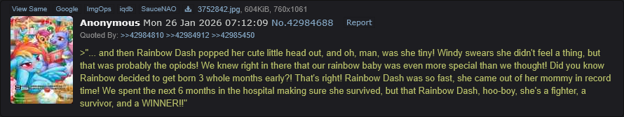 >>43142186Watch out who you're laughing at, Dash, you never know who they might really be...