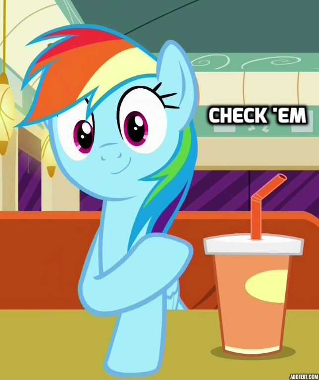 >hello rainbow dash I'm a huge fan oh by the way dashie could I have some of your shit m8?
