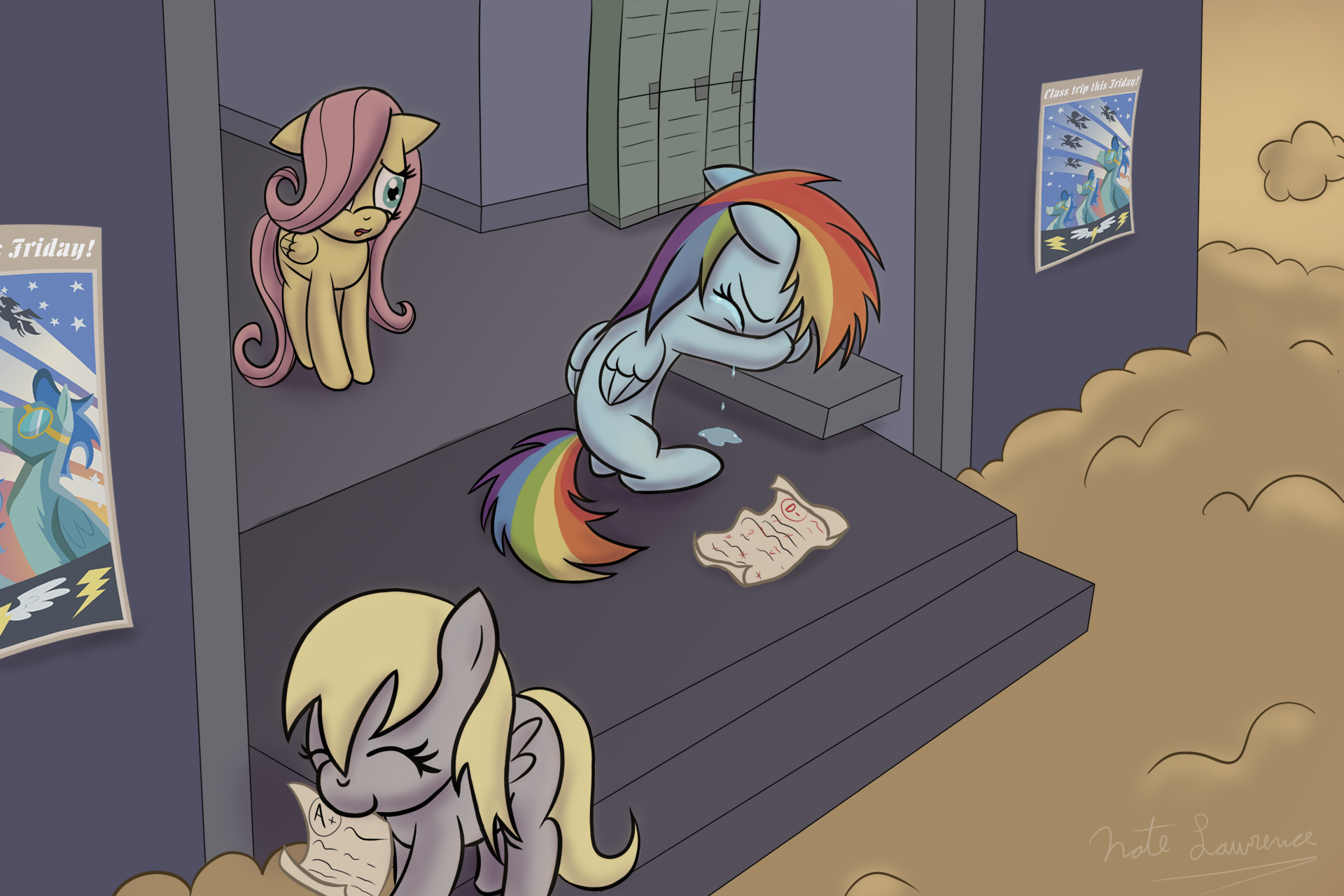 remember how rainbow dash's bad grades once got in the way of her watching a wonderbolts show as part of a school field trip and it permanently affected her self-esteem academically and it wasnt until she was an adult learner that twilight sparkle helped her learn she has severe adhd so shes not actually stupid she just has trouble focusing