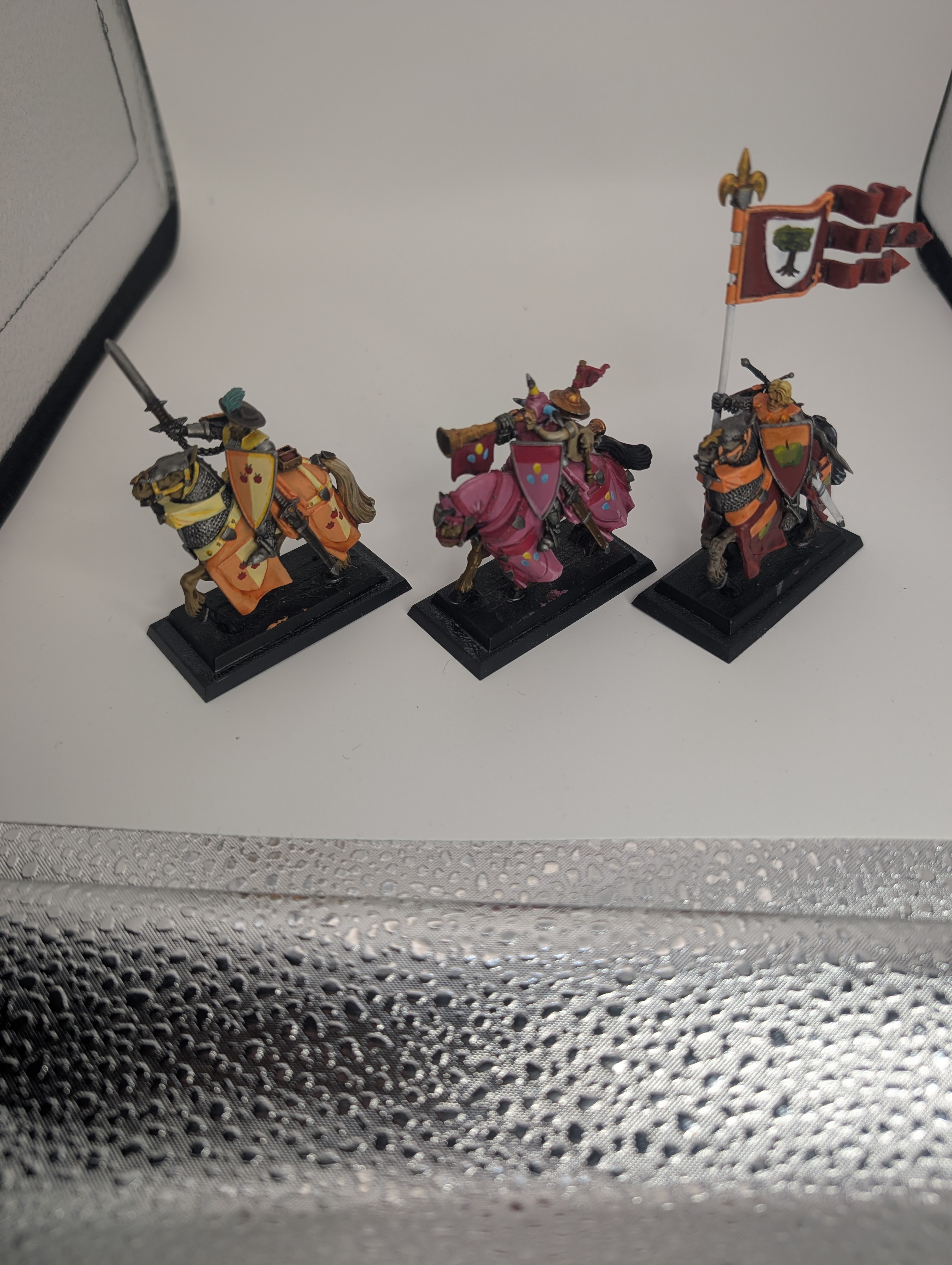 I painted up to 9 other knight errants. They were the inspiration for the entire project, Since errantry crusades are where knight errants earn their heraldic marks by doing brave deeds. Basically the same thing as a cutie mark and they're also crusaders it was perfect.