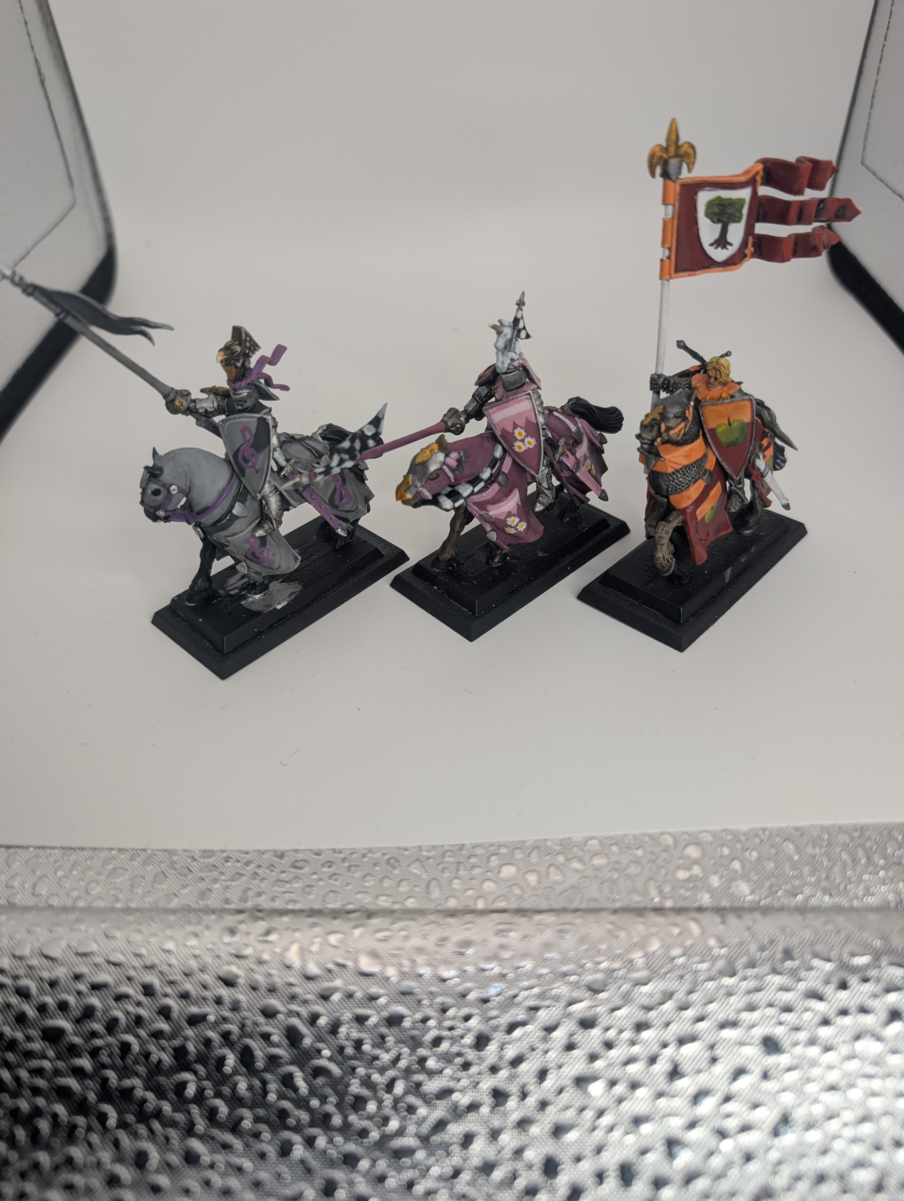 these were the first knights I painted and I learned alot about how to steady a hand, but I also had bad habits from back then (just whole brown washes)