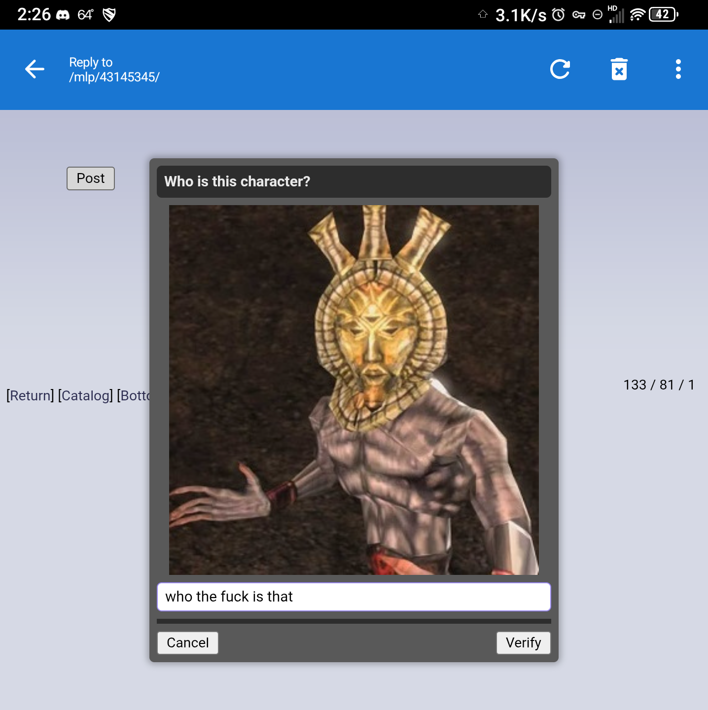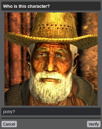 I just got a weird "captcha" asking who is this character and some distorted animu character.Great joke