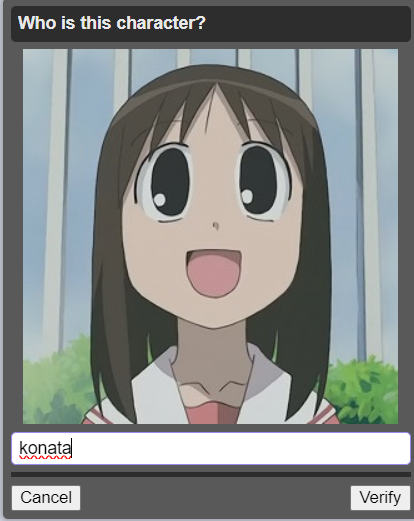 Hold up, just woke up need to see what this is about.>some anime character I don't know>retry>different shape captcha
