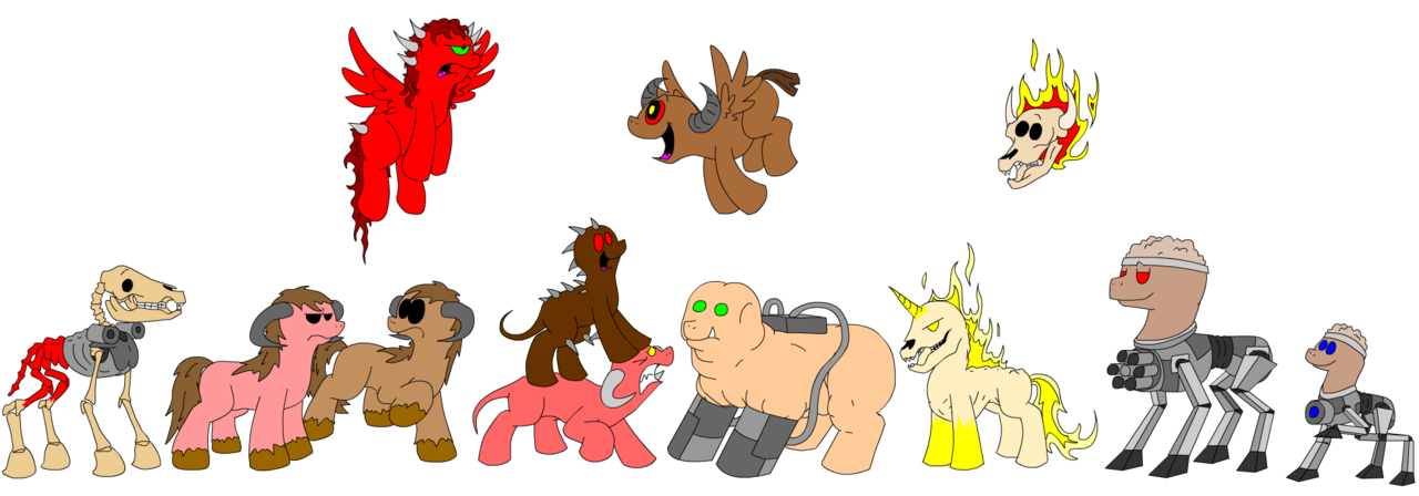 >>43158360I've thought about using the elements of harmony, but i've decided not to use all of them because i'm trying to keep the original items proportions (and sillhouette if possible) so doom players can easily notice what's supposed to be. I am risking to lose this with the gunpony but her coat color makes she look a lot like a shotgun from a distance and supershotguns are everywhere so i don't think it will be a big deal. For now i was thinking about:>keycardThe gems, or maybe i could adapt a horseshoe. It would bother me to use only 3 out of the 6 elements but i guess that's a me problem.>skullsI was thinking about using the zecora's tribal masks.>plasmagunflimflam machine.>bfgMostly make it look like a treasure made out of marble and with sun-themed details.>chaingunMaybe something to do with parasprites being used as ammo i'm not sure.>shellsMarels? Ponshl? Maresh? Not sure how i should call ponified shells.>clipsSomething to do with parasprites... I guess.>SpheresMaybe the soulsphere would look cool with Nightmare Moon laughing inside of it.>PistolNot sure yet. Thought about using the rara pistol but i think it would look ugly. Not sure.>Brass knuckleuh...