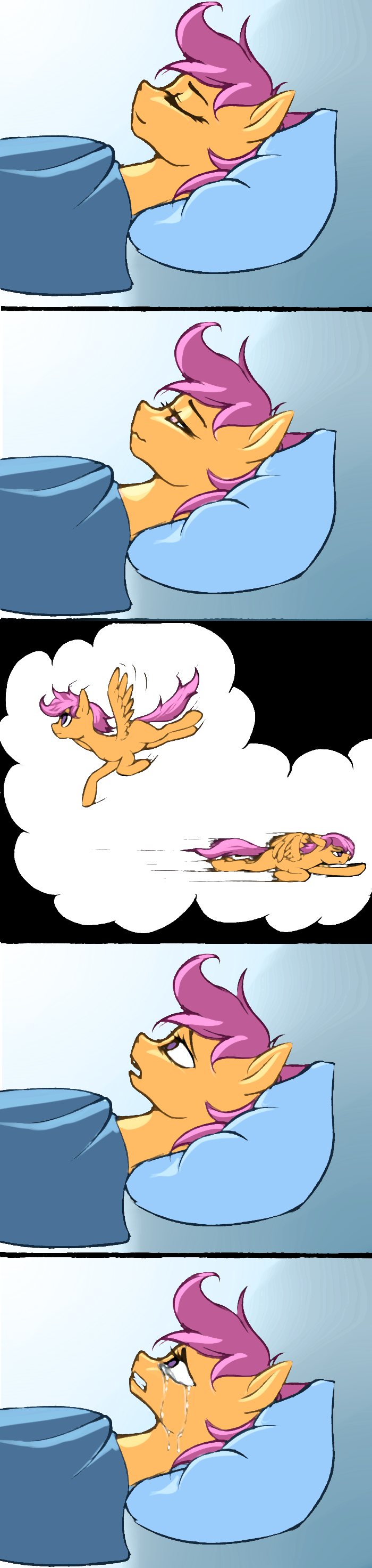 If scootaloo's wings got fixed and could finally fly for the first time, would you cry?