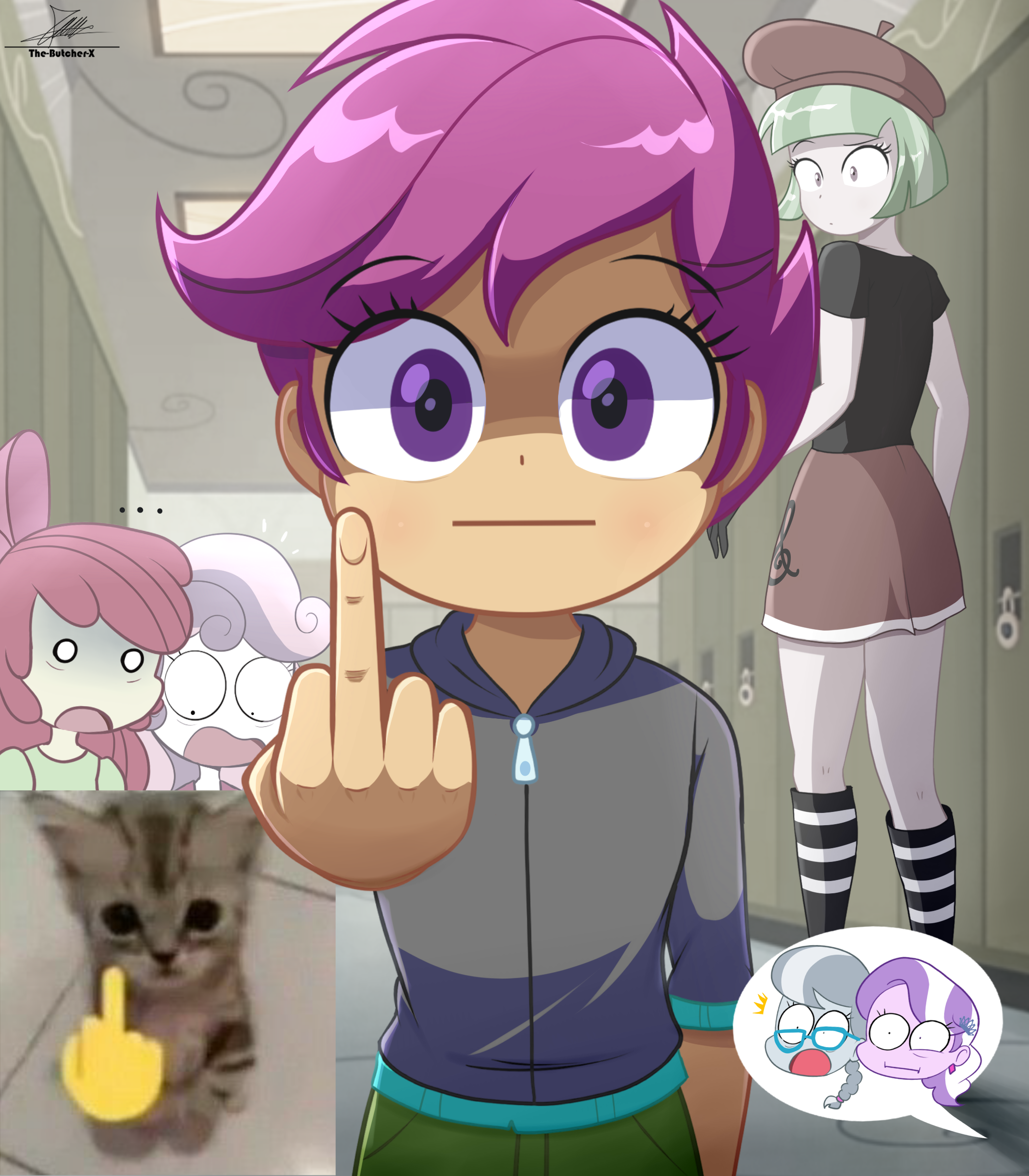 Uh-oh, looks like Scootaloo has been "learning" from Rainbow again! How would you influence Scoots so she doesn't do something that'll give Mr. Cranky-doodle a reason to put her in suspension?