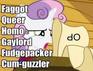 >>43168105Nah.Having a good childhood means that you think back on it with joy and a sense of humor. While I did try to trick and manipulate people a lot as a child and I did get away with it almost every time it wasn't because I actually tricked those people even though I would have liked to think so at the time. That's what so funny about Cozy. The ponies are actually dumb enough for her to trick them. She's imaginary. She's a child that is actually able to trick people.While we all go oh fuck I guess that means I'm a pedo to this >>43168020 nobody actually believes in his bullshit.