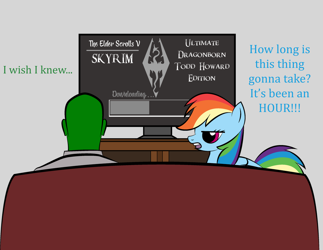 >Skyrim: downloaded>Horsepussy mod: installedYep, it's gamer time
