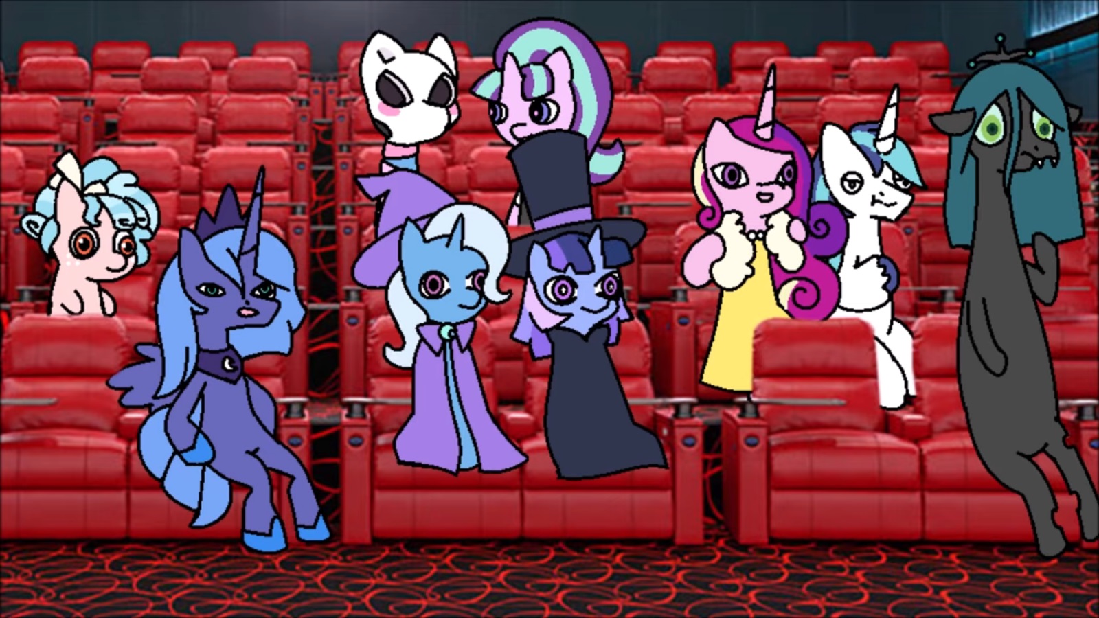 >>43170100The timeline on scream was actually pretty understandable:>Trixie's group sneaks out to see it>Starlight & Mari just finished it/were leaving as they enter>The movie is interrupted by Trixiebelle>The fight occurs for it's time frame>Scootaloo's plot happens>Trixie and her group then go back to see the movie uninterupted>Starlight and Mari have been at home since around the point where scootaloo's plot began