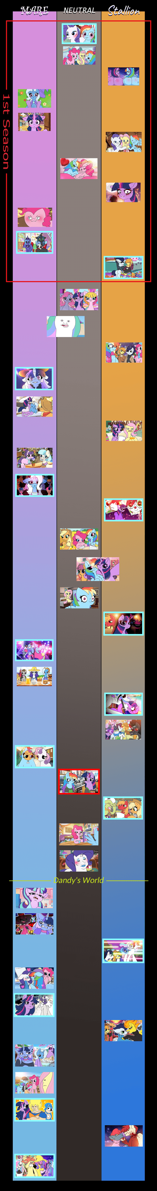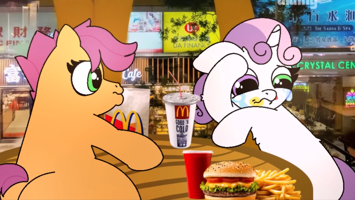 So I've rewatched the episode. The most common complaint I've heard seems to be the pacing. And I agree that it gets confusing and disjointed with so many characters. I won't say much about the comedy because it had really good moments but some were so predictable that dragged on (Twilight transformation joke). What Im mostly trying to sort is the new stuff. The new characters stories could have handled itself better. I wonder if the exposition could have been done better if it was it's own episode. In SU we had a couple "Origin stories" episodes that explained important bits for certain characters and were self-contained stories (Kevin the Hedgehog or Sleet and Dingo for example). But I'm not sure if this would be possible with the way the channel handles the upload schedule.So we have massive backstory that was apparently edited to not lean into controversial territory. For Trixiebelle and Skywishes in particular you can really tell they were meant to be kids. And that bday scene seems to be the most apparent hint of it. I can imagine the original vision would have been something like Skywishes reaching 20 years old (19 in the candles) and then use the same joke of turning the 6 to a 9. It'll make sense that was the case because of Starcatcher's reaction and that leading to the conversation of "Would I ever be adopted?" and even discusing about college and a possible future together (Some people would have raised their eyes but 20 is still a legal age I suppose). Trixiebelle seems much younger tho. His relationship with Starcatcher seems more motherly-platonic. But I guess Tamers2 could have got worried about the implications of grooming (She's still her caretaker and the talk about getting her fired because of her "closeness" with them could have been interpreted that way). About how old Starcatcher would have been originally I cannot say but probably just older than 40. This wouldn't really matter because the main problem were the kid ages. In typical Tamers absurdism this also could be just an overly exagerated bit of old ass horses not being adopted but it really felt like we were meant to take this characters seriously by the tone. So I don't buy it.