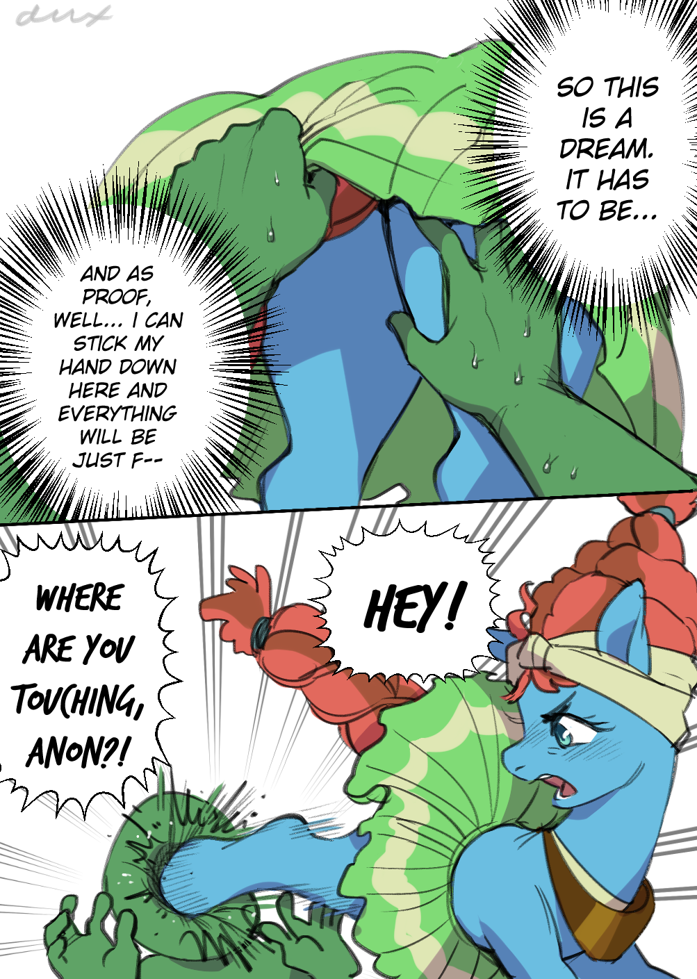 >>43169475If im not interested yes, I have a specific pony I want any how.>>43170864For a sec I had thought pinkie formed her hair into facial hair on anon's face.
