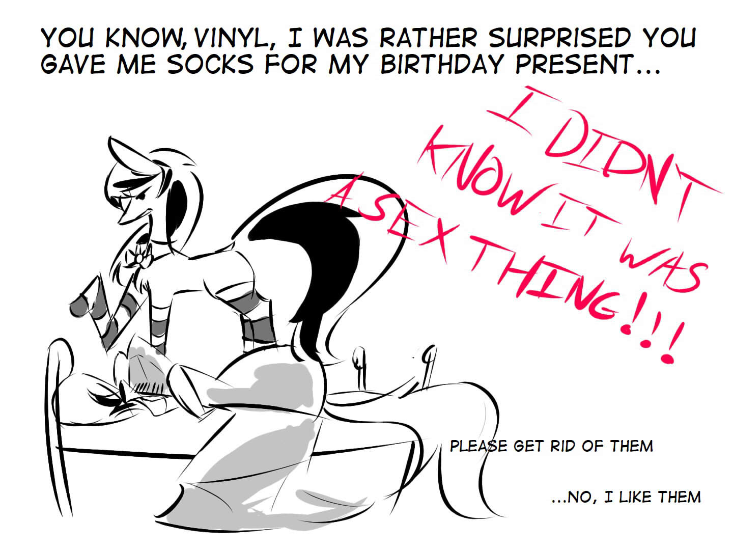 >>43178621Octy and you don't have that kind of transactional relationship, she gives you the super sucky just about whenever you want. Mostly because it makes Vinyl jealous.Vinyl has to earn it or she'd get even lazier, she needs motivation or she'll just lay about eating, getting high, fool around on her equipment, or jerk off/have sex.
