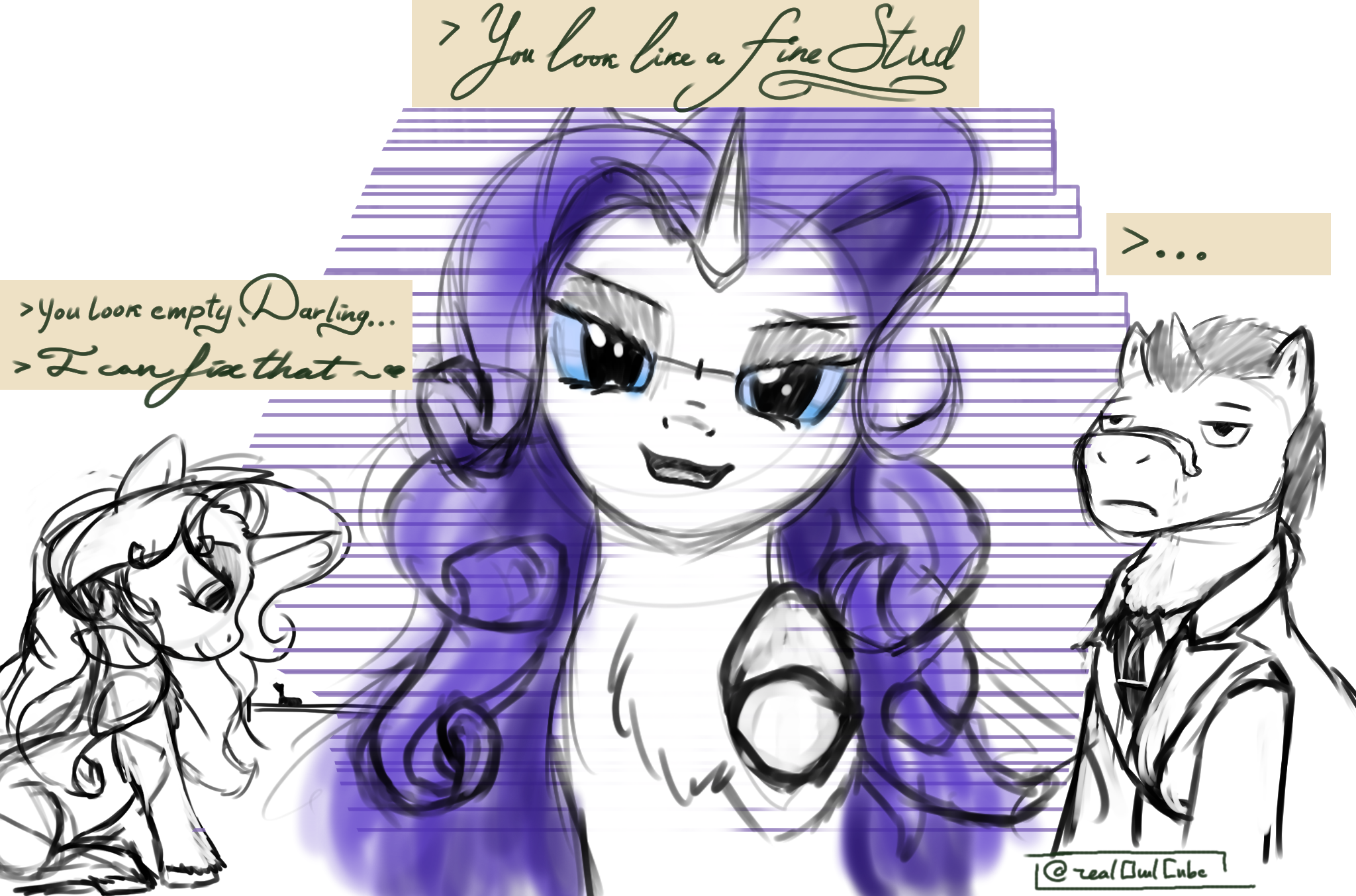 I HAVE to get stronger.I have NO CHOICE.Rarity, >mon petit chou-fleur, she has no use for weakness.Adorned in platinum, she is worth more than all of Equestria.But the burden of holding such worth in my arms is too grand...