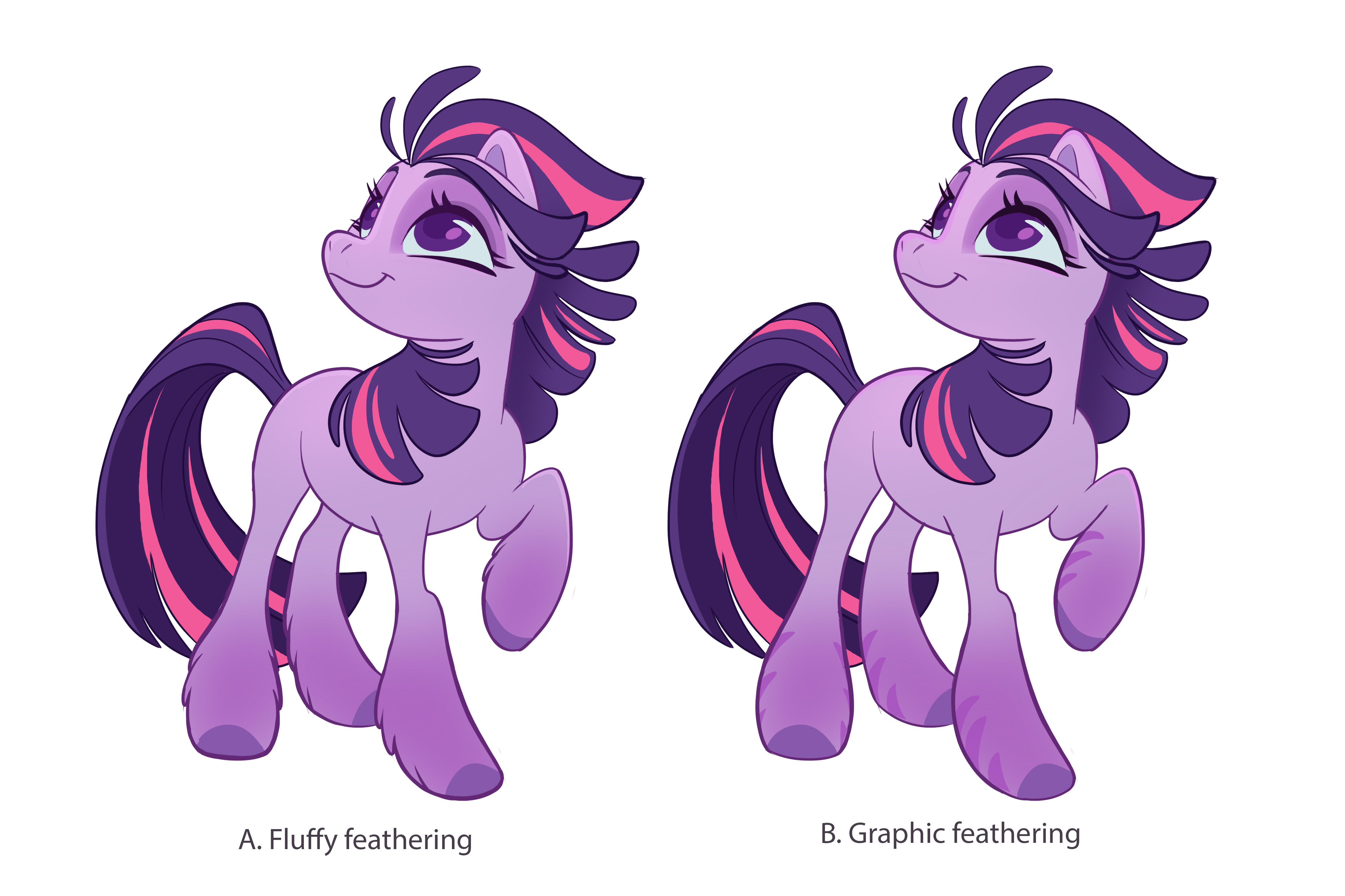 FIM ponies are perfect:Add new/more details and they are overdesigned.Simplify and remove any details from them and the ponies will become a colorful slop.Faust might be a bad writer, but she is a genius designer and her art-style and pony design were one of- if not the main things- that made FIM so great.