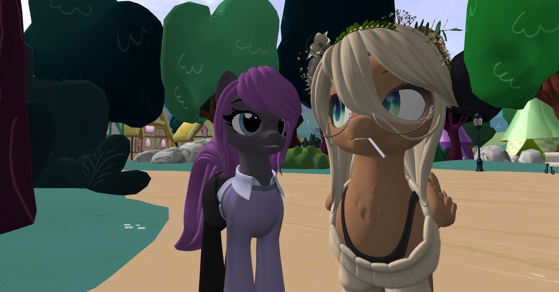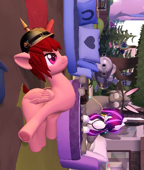 >>43207506>maneIt's common to start with one of the free manes, and there's a huge amount of manes on the market so you can take your time picking one and you can always change styles regularly if you want. For your starting mane just pick something that doesn't look awful and you're good, think of it like arriving to Baltimare after a bunch of travels and not having had time to visit a stylist yet.>feedbackI'd say unequip the celshade. It usually doesn't work well with most looks, especially when most manes, clothes and accessores don't come with celshading.Other than that, hm, the grey and purple color scheme can actually work, but just off the top of my head here maybe try making the grey a bit darker? Right now it looks a bit washed out, more like a missing texture kinda grey.>cutie markThere's a big pack of canon/show cutie marks and some ponies use those.Otherwise I'd say that generally ponies have a cutie mark if they have an established OC with a specific vision and a design already in mind. Lots of anons who basically made their pony from scratch just for SL either don't have a cutie mark or took a while to come up with one. You can always add one way later, once you come up with a special talent for your pony.Come to think of it, I'm pretty sure there must have been at least a few ponies who added a cutie mark a while after making their pony but nobody's ever organised a cutiecenara party or anything.