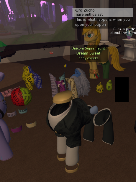>>43206982"Popen" is a term used in the MLP Second Life community to indicate that the user is open for virtual sex. The "P" stands for "pussy" or occasionally "ponut", and "open" means the obvious.