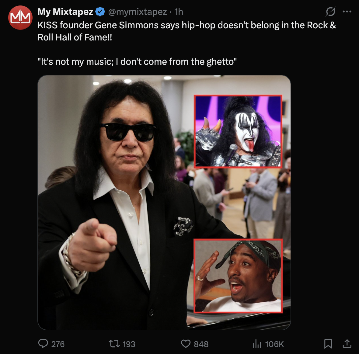 >>129406285Gene is the quintessential boomer. No literally, he has been rich since the 70s, he's old now, he doesn't give a fuck. Boomer in this context isn't to disprove what he is saying, but he is rich and old so he doesn't give a fuck. All rap and hip hop isn't trap or drill, but it exists. You don't have opera singers beefing online and having opps that they slide on. If he feels like rap doesn't belong in the rock and roll hall of fame because it isn't rock then he is allowed to feel that way