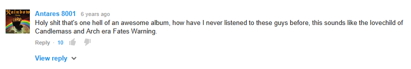 >I find it very hard to believe that this band managed to craft a better song than Riding the Storm desuyou'll believe it when you hear it lol. and more than once, there's a lot of killer stuff on their later albums. RW in the 90s were in a really strange place, at their best they played some of the best heavy metal in the world, their songwriting was getting more consistent and assured but at the same time their lineup was wearing out/disintegrating and the tipping point came right after Masquerade, they turned into a drum machine led studio project.
