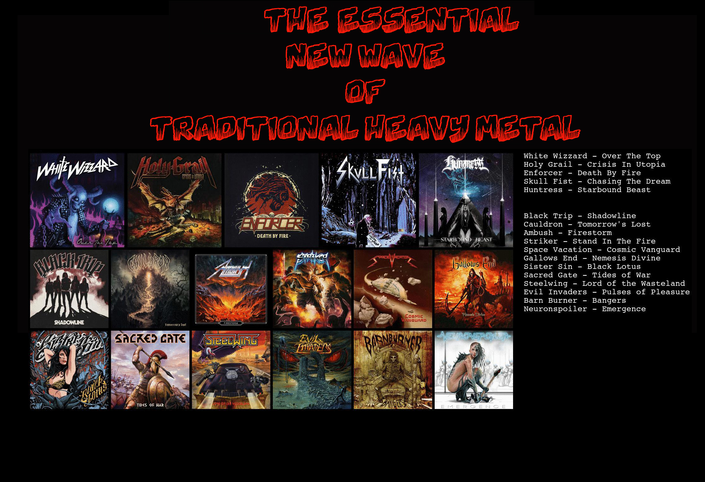 >>128193368>EnforcerYes but not this album. Diamonds is a masterpiece and From Beyond is Great too>CauldronFirst few albums are nothing special but In Ruin and New Gods are great>AmbushFirst album is good the rest sucks>StrikerPass, could never get into themNever even heard of the shit on the bottom row. For good modern trad I recommend:Angel SwordIron SpellEternal ChampionThrone of IronAardvarkSabireFlightHigh SpiritsFreewaysSumerlandsTowerSmoulderBlood StarSign of the JackalSatan's HallowGygax