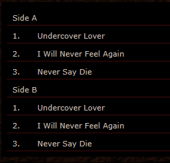 Book-ended by two really good songs, the rest of the record is pretty good too. Check it out, the sound here is similar to Loudness, Anthem, and mid '80s Priest.https://www.youtube.com/watch?v=jb6AyOIdkLk