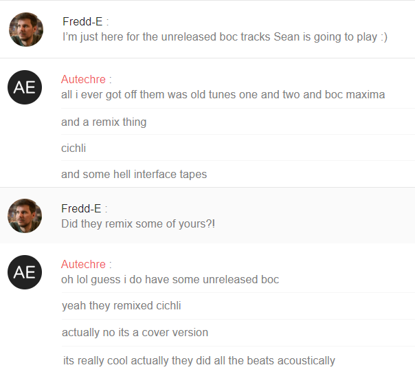 >>128222039Sean and BoC are still buddies. He's heard plenty of unreleased stuff and claims he has the Cichli cover, but he'll never leak it because he's afraid the brothers will stop talking to him lol. Guess we will never listen to it or... it could be released on Warp's 40th anniversary thing in a few years.>>128222039They're pretty protective of their art, I'll give you that.>>128221913Stfu. Both are great.