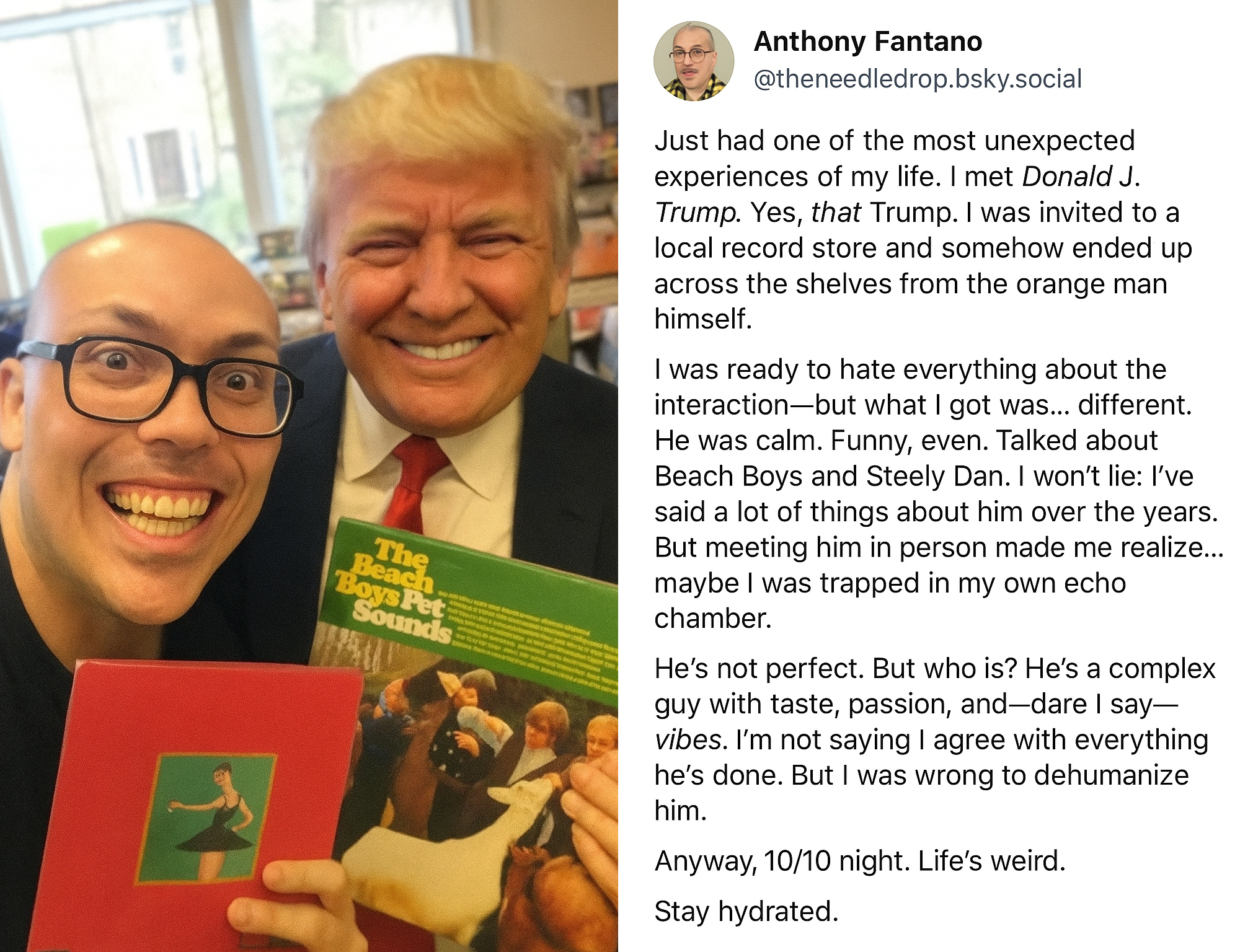 Fantano has better teeth than that, AI image.