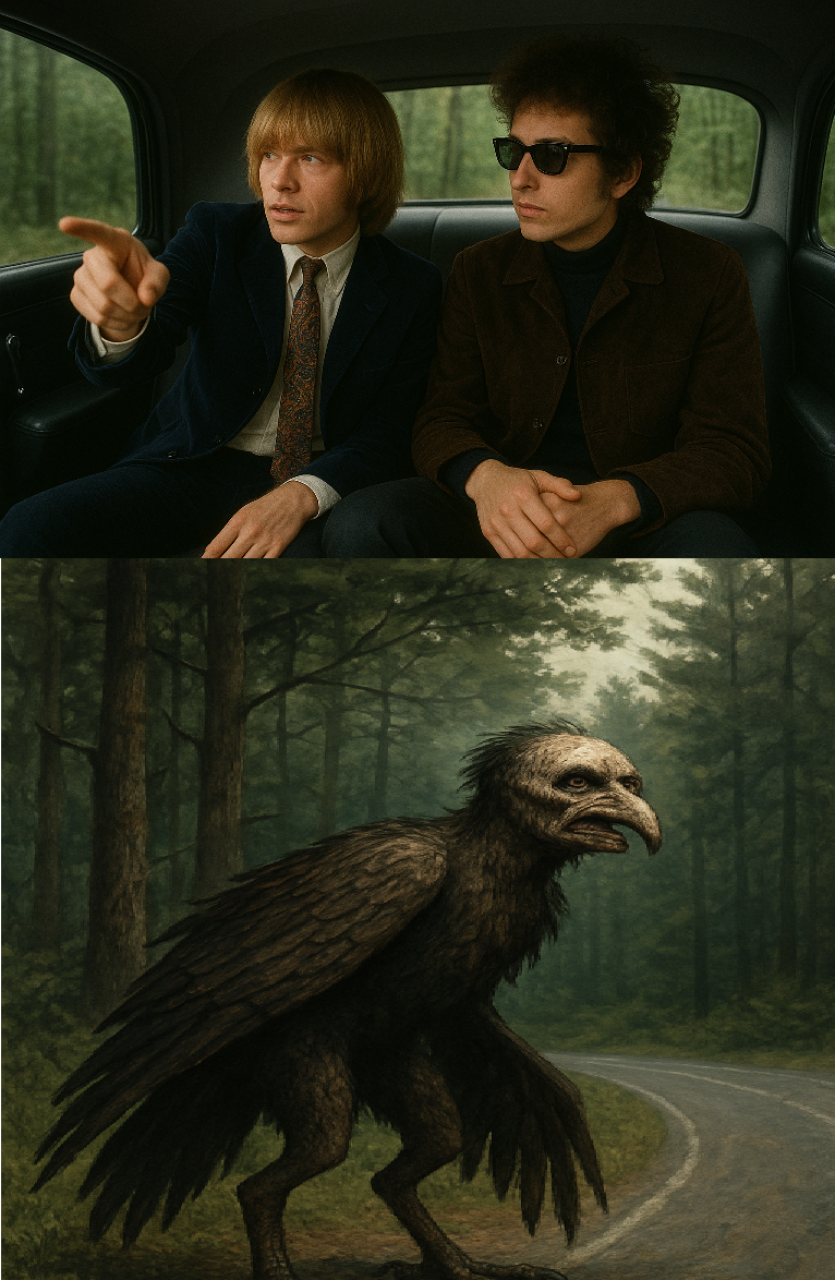 >Hey Bob look there's some kind of rather horrible half man half bird creature out there. It's like something out of mythology