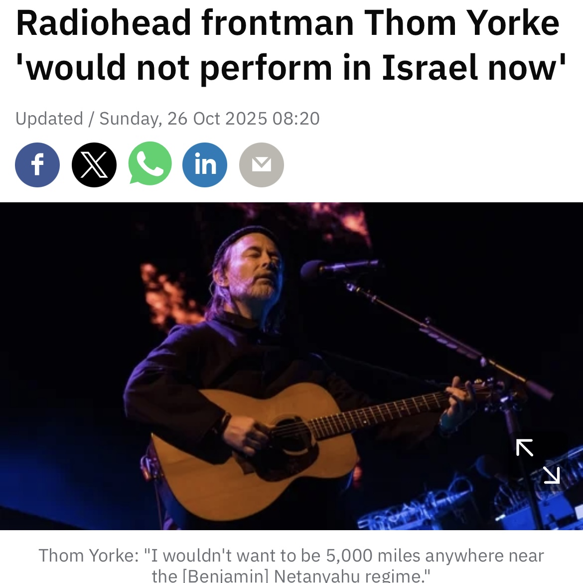 Does this mean I can listen to OK Computer?https://www.rte.ie/entertainment/2025/1026/1540639-radioheads-thom-yorke-would-not-perform-in-israel-now/