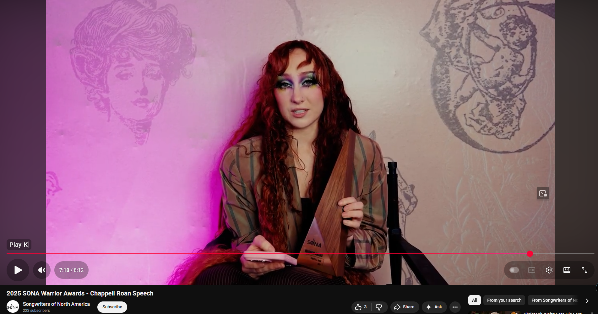 Chappell was awarded a Song Writing "Warrior" award by the Songwriters of North America and was presented the award by Justin Tranter ( One of the Co-Writers of "Good Luck Babe" and many other Top 40 songs in the past decade). Her acceptance speech starts at 6:47.