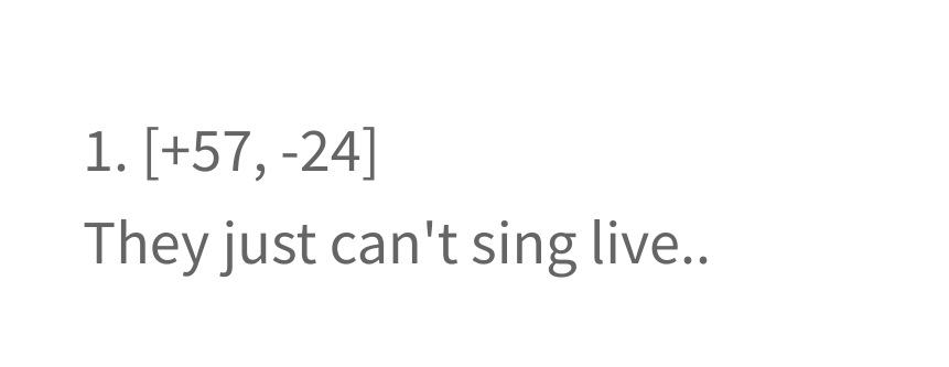 >>128262379it's not just the intensity, by default 100% live vocals are going to sound very different compared to the processed studio version and it's especially the case with a song like Focus. then add in the constant quick movements they have to do and the singing will end up sounding uneven and pitchy, it's unavoidable.listen to the izna and meovv performances which both had their mics mixed louder and you'll see how bad they sound and that's with less intense choreos. with h2h the dancing is the main attraction so since one of the two needs to take a hit it makes sense to deprioritize live vocals and give 100% energy to the choreo for the best performance