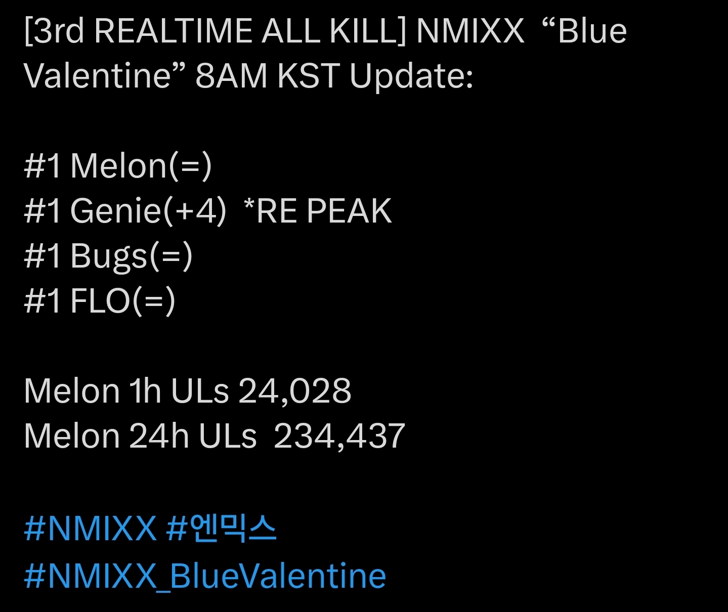 >OCTOBER COMEBACKS1-15 https://pastebin.com/g9KDWt6k1-15 NMIXX https://youtu.be/EmeW6li6bbo MEOVV https://youtu.be/hlULtigNNao TWICE https://youtu.be/zqorlX_5oHQ16 Kim Lip (ARTMS) https://youtu.be/MlI5f90ZBPM17 Joy (Red Velvet) mv https://youtu.be/i8tm-_ZktwI20 Hearts2Hearts https://youtu.be/Ur7aK4FvK-U BOYNEXTDOOR https://youtu.be/yAtew9dZX_E BM (KARD) https://youtu.be/eq92CQE9X9g TXT jp https://youtu.be/sswmsnPigDc22 VVUP https://youtu.be/fMKV94jATas23 JinSoul (ARTMS) single https://youtu.be/vx_Odm5q_kQ24 LE SSERAFIM https://youtu.be/TvVtYaqCni8 Xdinary Heroes https://youtu.be/L4rOBdjcwLc27 TEMPEST https://youtu.be/Hk2u4zlJ4HE I.MET.U pr https://youtu.be/6qHRHaxOyW428 Gyubin single29 ZEROBASEONE jp30 Choerry (ARTMS) single31 Dami (Dreamcatcher) single, WONHO>ResourcesHelpful Info (Show Times, Music, Guides, etc) https://pastebin.com/N6sw4gLGWebm Making https://pastebin.com/YUwVnVwwMonthly Polls https://pastebin.com/vjUXD5RZalso check out the other kpop threads on mu and other boards! >>>/tv/kdg >>>/wsg/kpg https://boards.4chan.org/mu/catalog#s=thread%20#