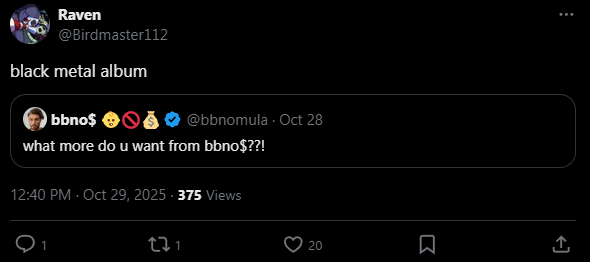 do you think bbno$ should release a trve kvlt album?and if he does, do you reckon it will be good?i think if he puts his mind to it he can make the trvest kvlt album of all time!