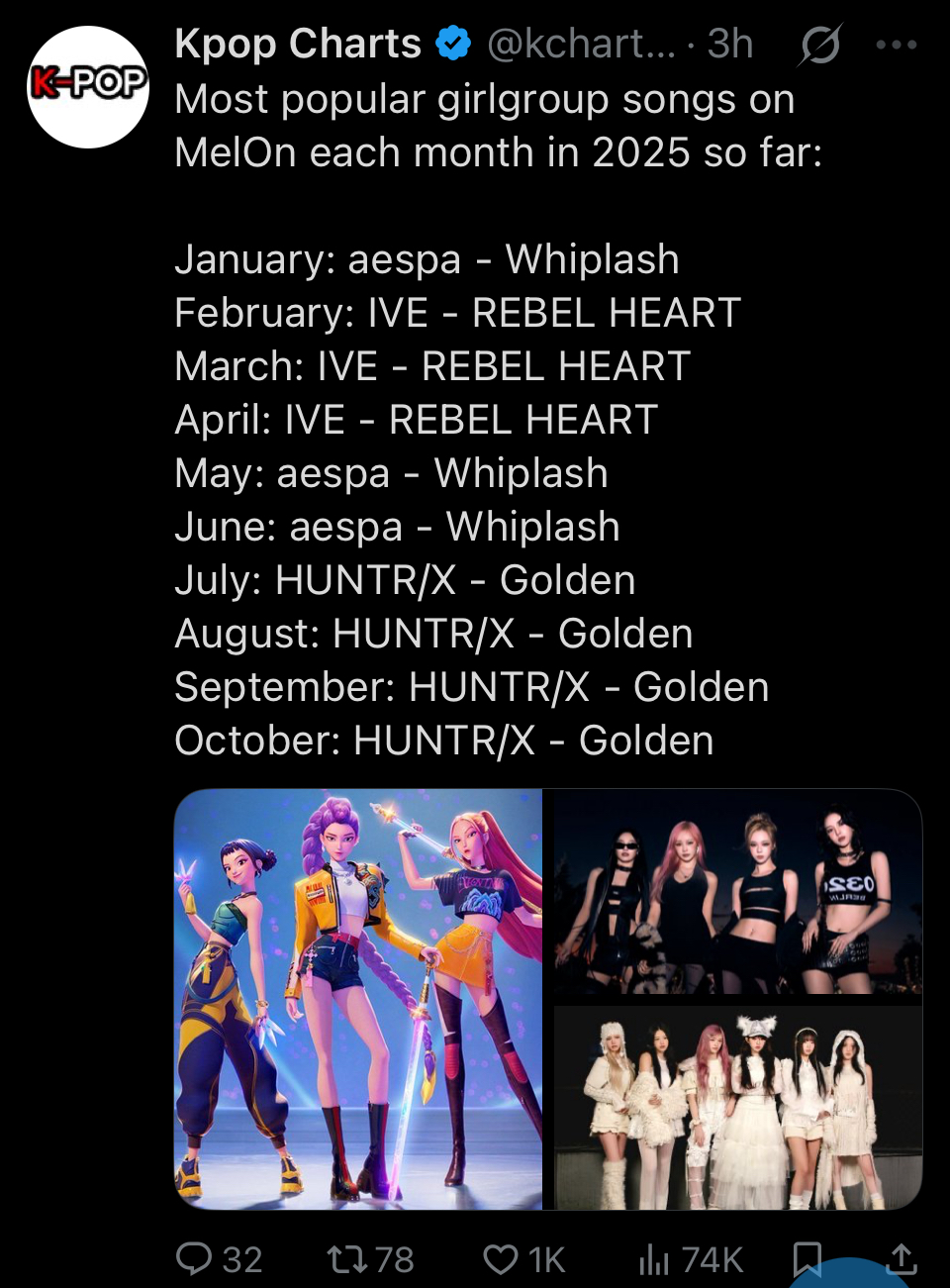 >>128313830"Popular K-Pop Songs of 2025"Killin' It Girl" (feat. GloRilla)"