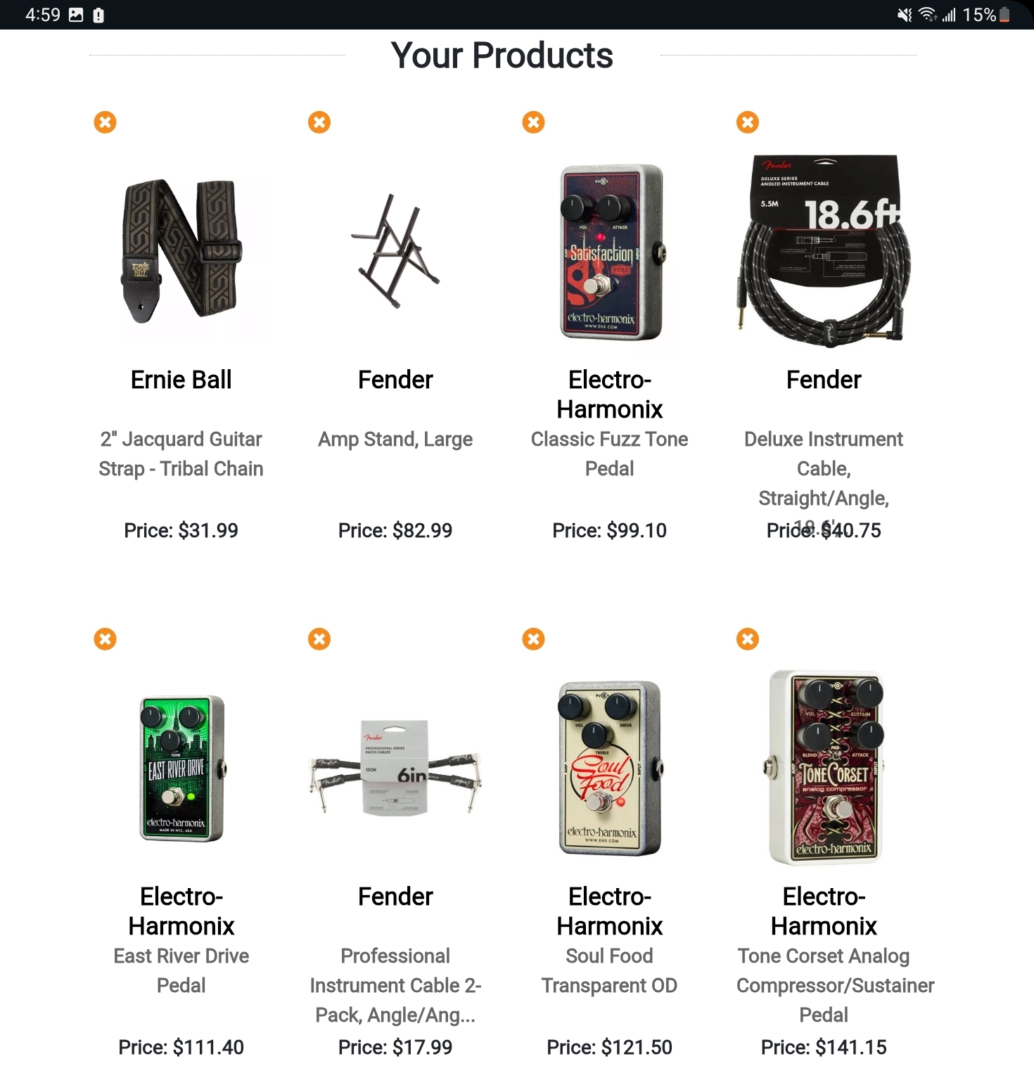 Okay, I've narrowed it down to these accessories. Now I need to settle on a guitar and amplifier.