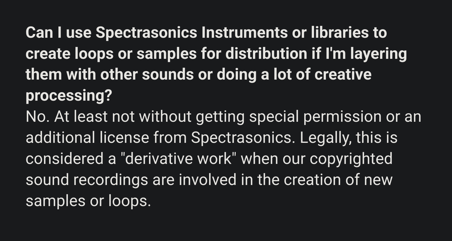 I just found out that you're not allowed to make samples and loops using Omnisphere.https://support.spectrasonics.net/manual/Omnisphere/legal/index.html500 dollars for something you don't even fully own lmao.