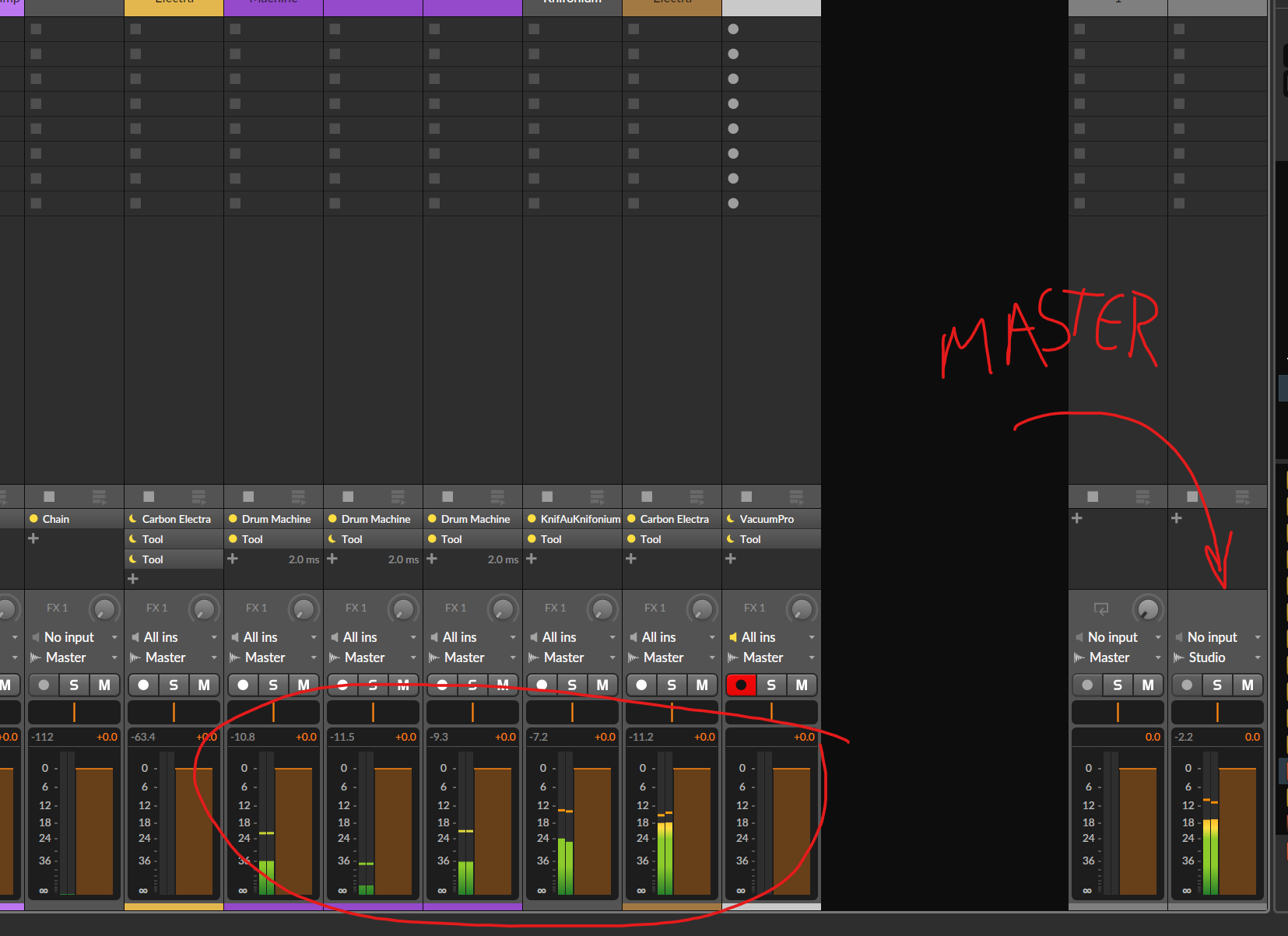 *generally you don't want anything to hit above 3 on top (in the middle of 6 and 0)If it's all gibberish, have a look on youtube "how to mix on 'DAW name'">>128348305