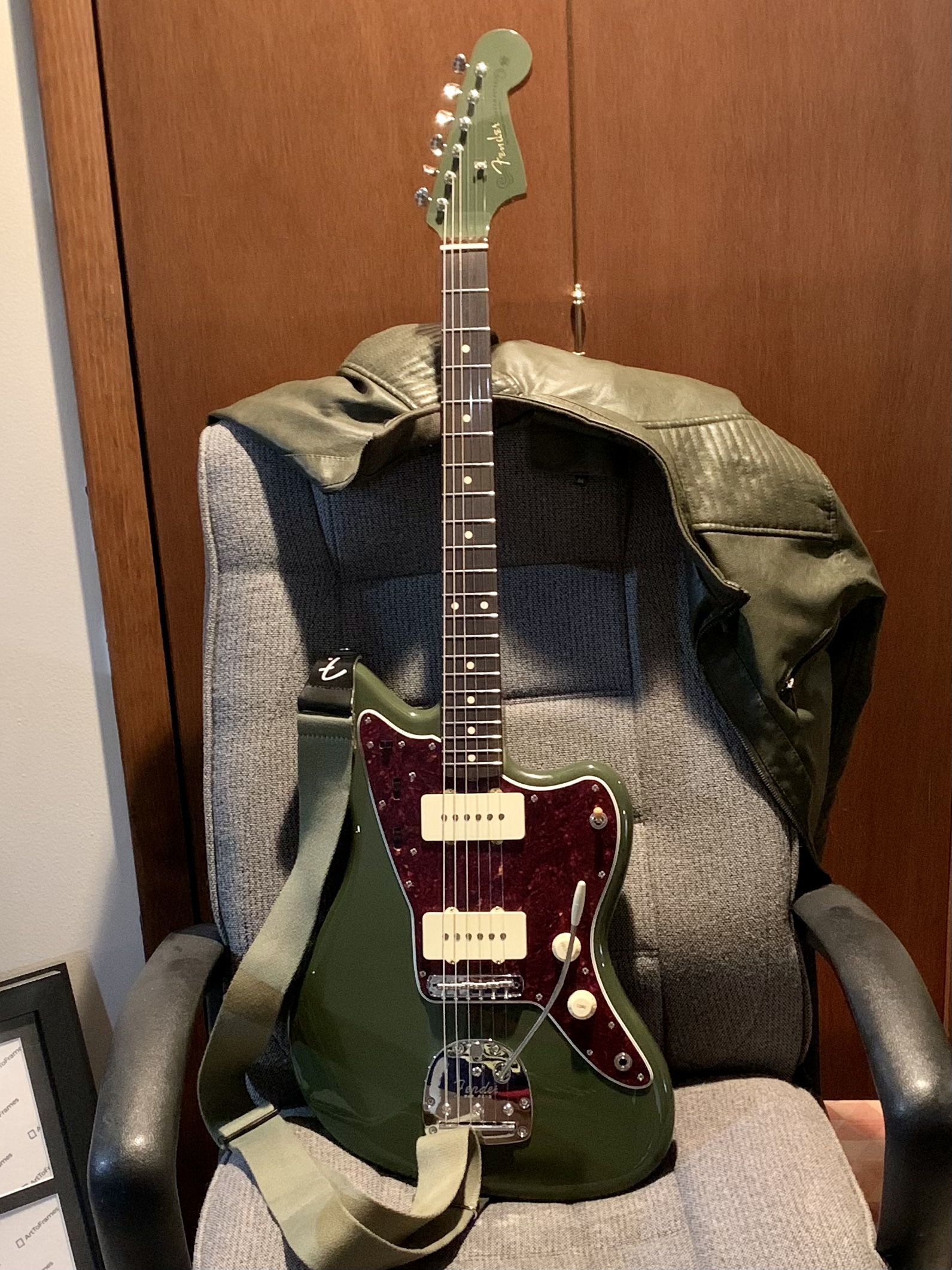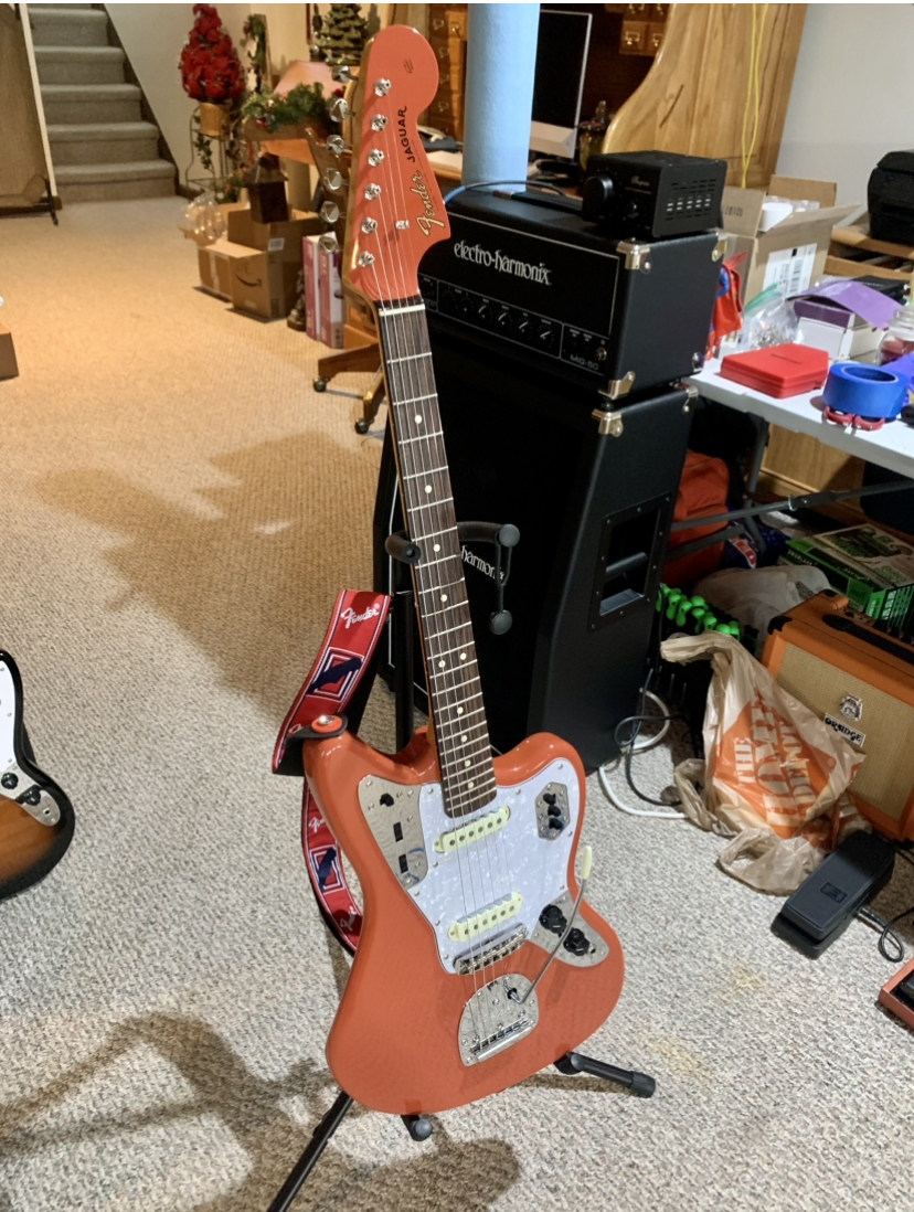 Sup fa/gg/ots, me and my fuckin baby. Well, being a Vintera I knew I’d find some flaws with this thing, luckily it’s nothing unfixable. The tuner for the g string has some slop in it, guess I’ll be getting locking vintage style tuners. The nut also needs some work but that will have to wait until the tapered shims show up. Shim, raise the bridge up, file and lube the nut slots and then it will be close to perfect. The trem is great and so is the original bridge that filters so many offset fags, why would you replace it with a Mustang bridge and lose the ability to adjust the height of the saddles?? The rocking bridge is a feature not downside. I am really enjoying having a rhythm circuit on this one, I would still say the Noventa JM has a wider range of tone but it’s at the expense of needing P90s, this has a slightly nicer clean sound. Fucking around with this has made me realize that I kind of like having to fight a guitar, I’m still going to set it up and upgrade a few things but part of me wants to leave it just how it is for nostalgia’s sake