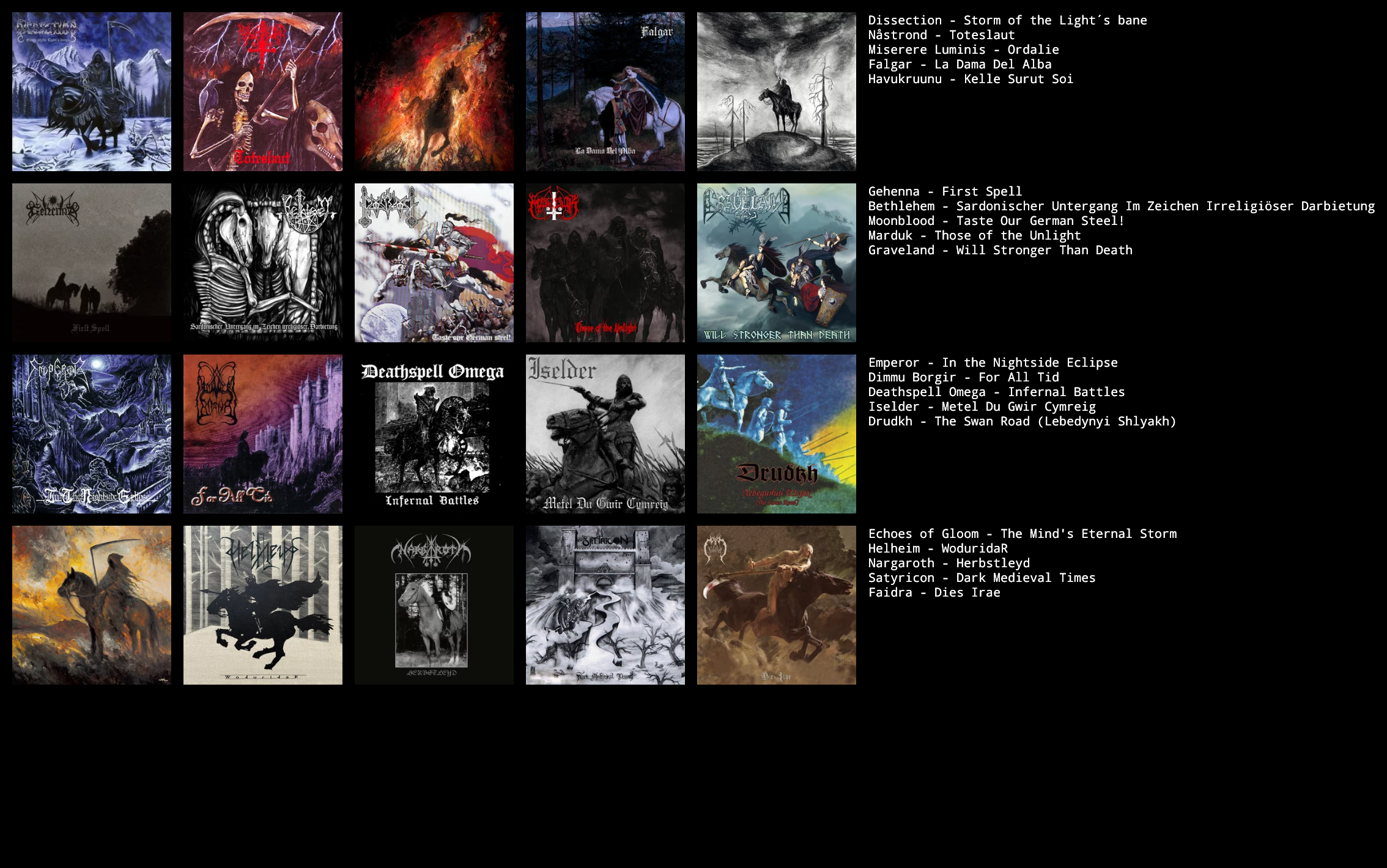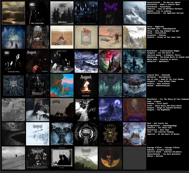 Your chart is likewise based. I see you've been blasting your way through Paysage D'Hiver's discography... Which is your favourite? Also if you haven't listened to Ildjarn I recommend him to you.