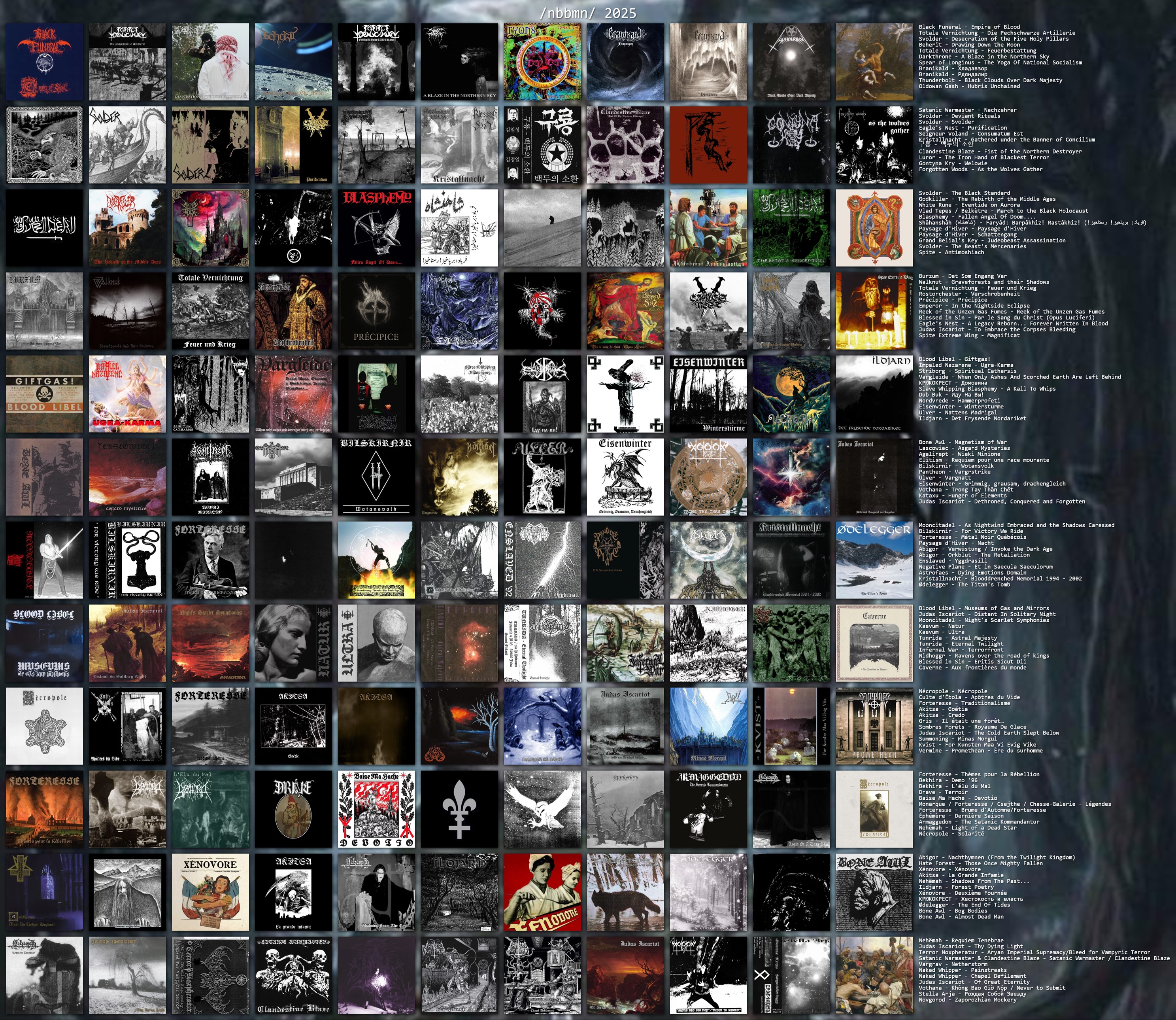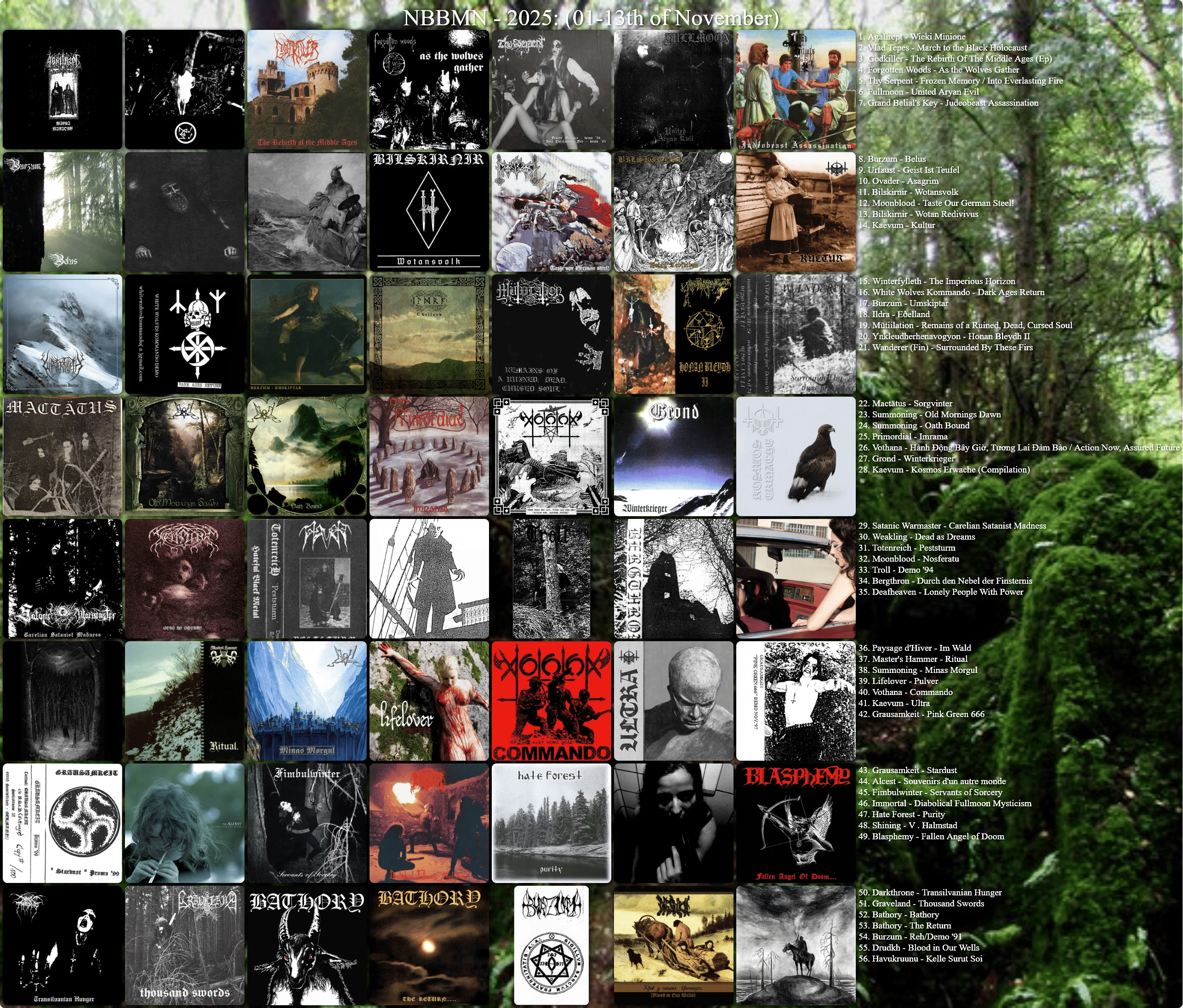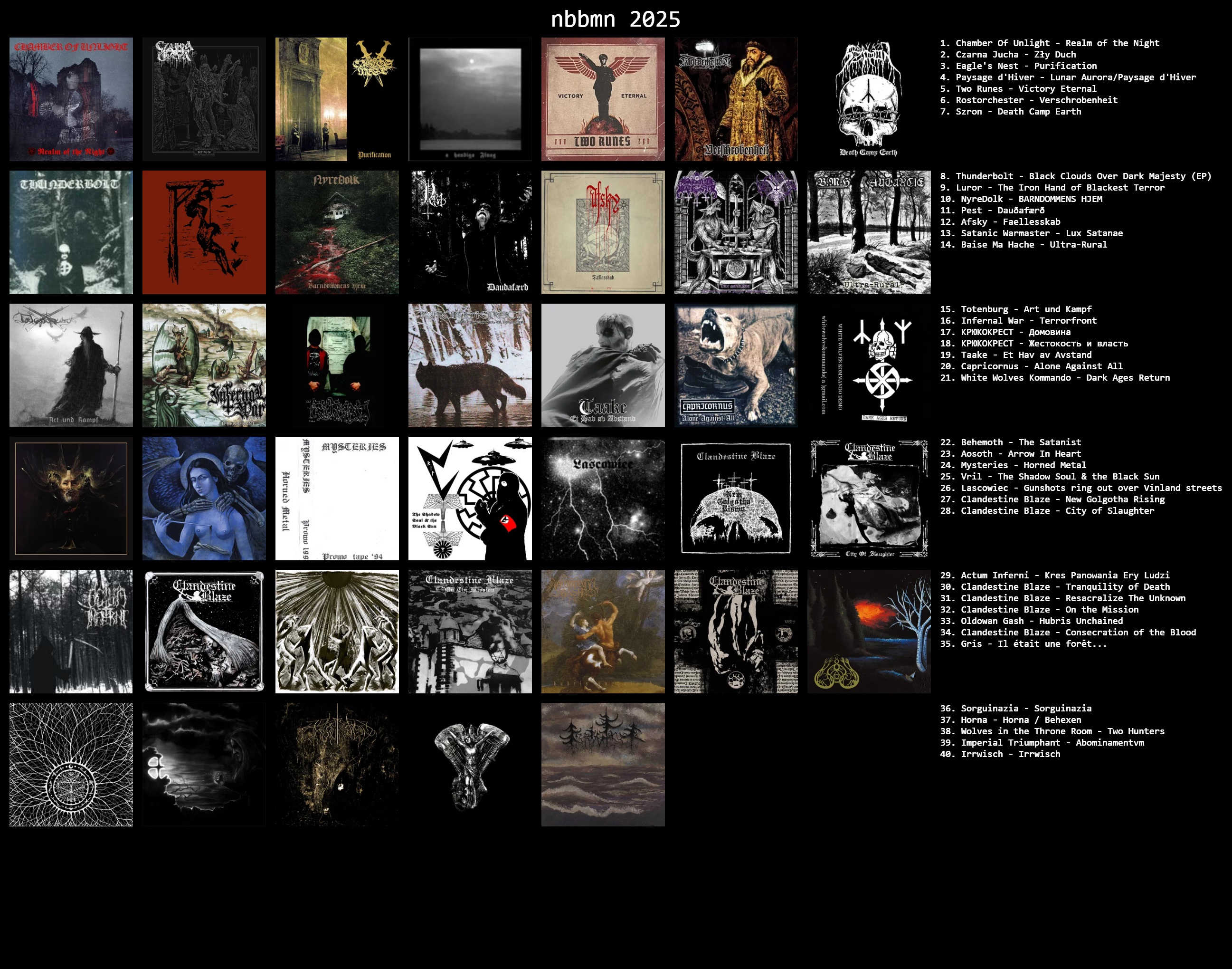I agree and that’s a good thing. Either you have slow comfy threads or constant derailing/ political discussions/ varg posting etc. there is no healthy inbetween. If this years threads would have double the amount of chart posters there would be also double (or more) amount of derailers that take personal offense in people discussing black metal. If you genuinely think the threads are too slow, contribute.