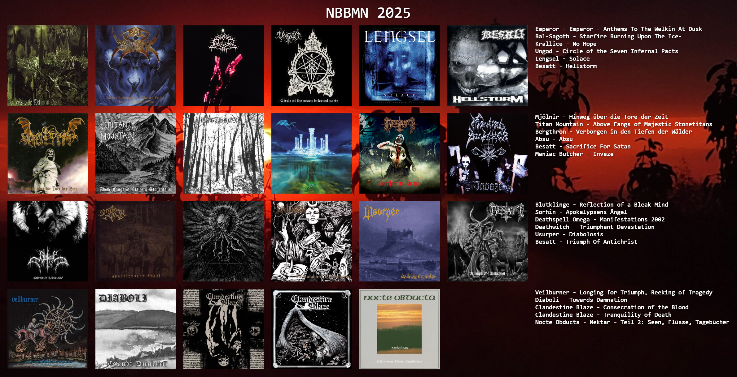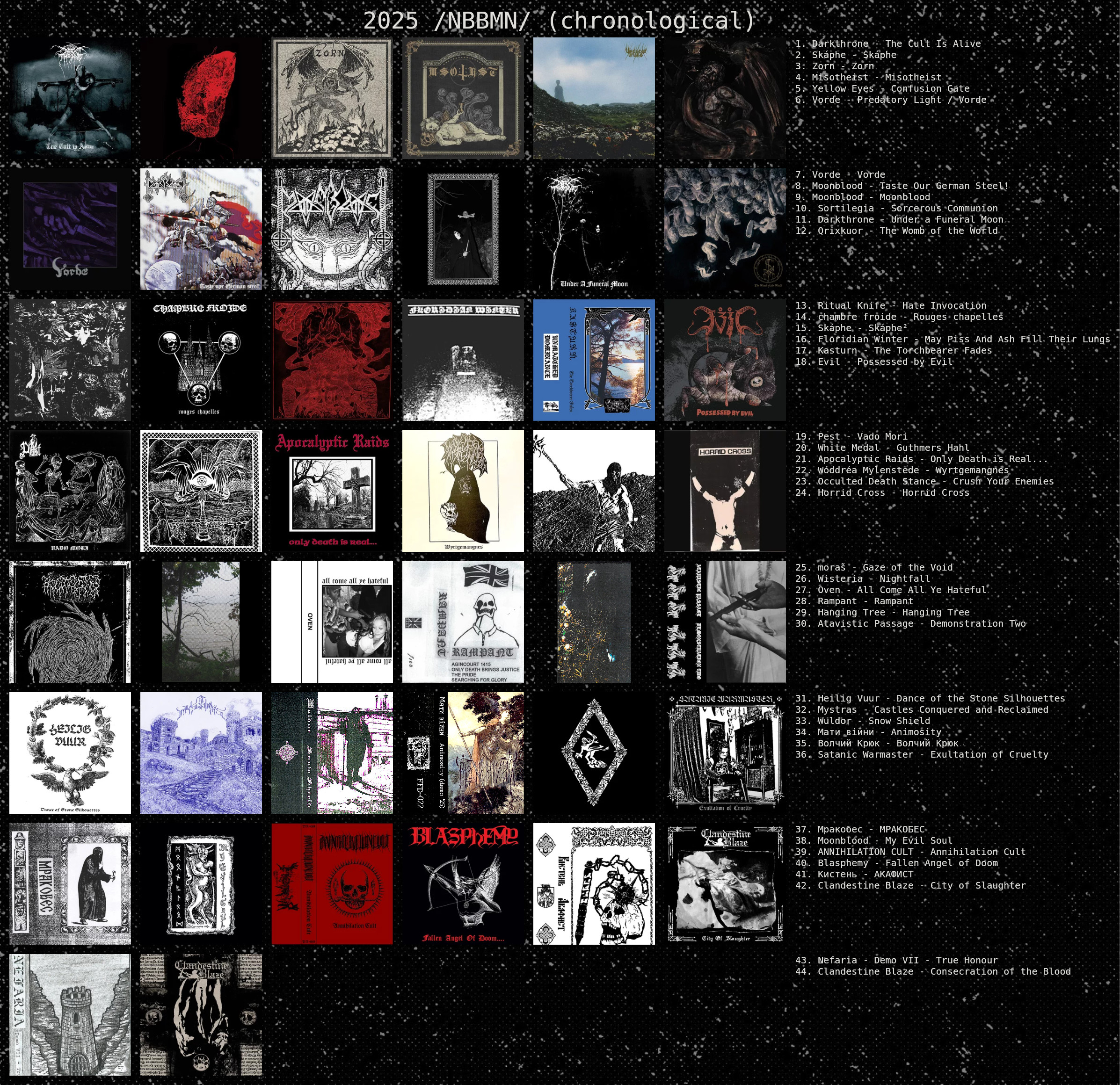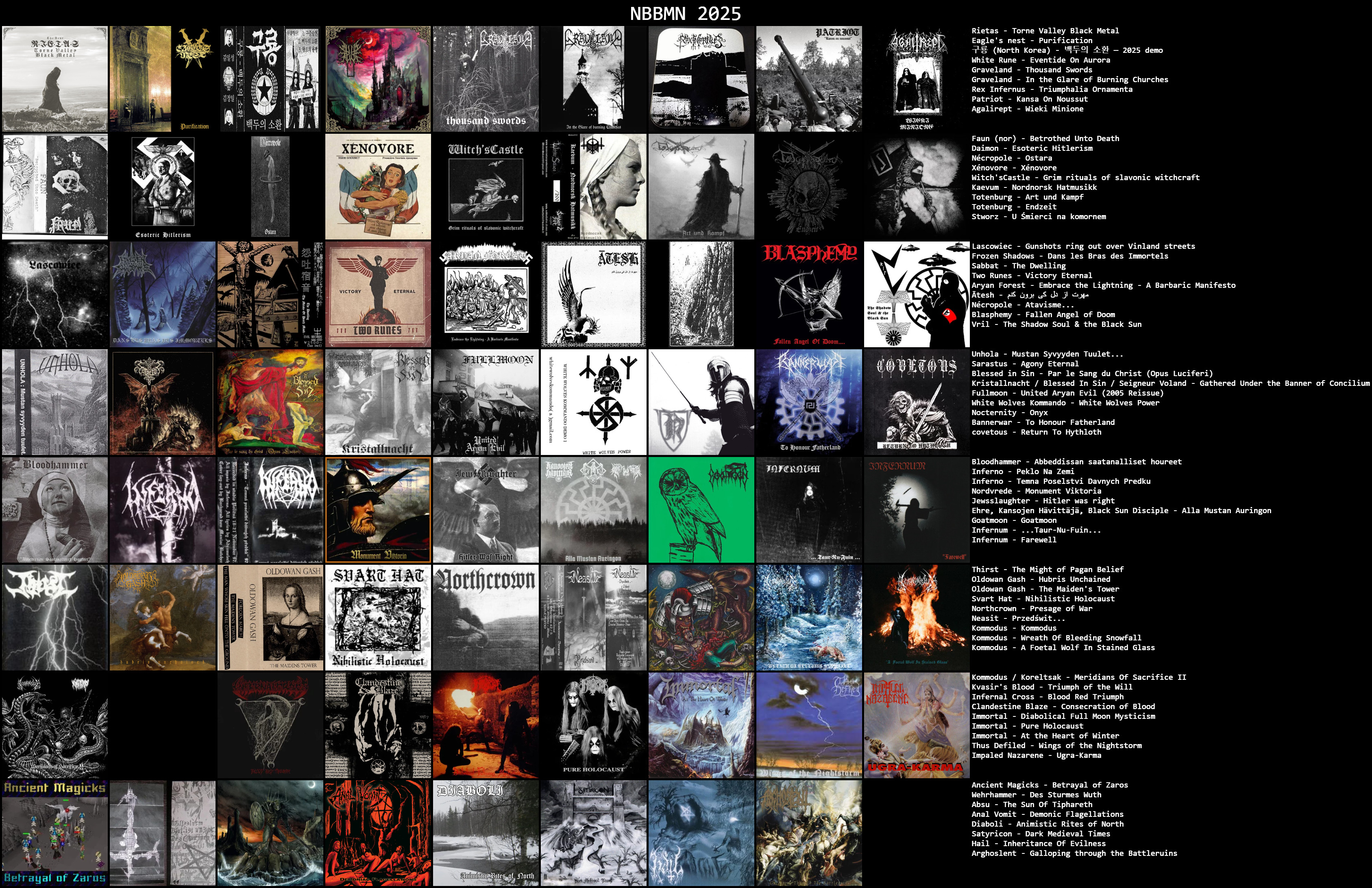 I agree and that’s a good thing. Either you have slow comfy threads or constant derailing/ political discussions/ varg posting etc. there is no healthy inbetween. If this years threads would have double the amount of chart posters there would be also double (or more) amount of derailers that take personal offense in people discussing black metal. If you genuinely think the threads are too slow, contribute.