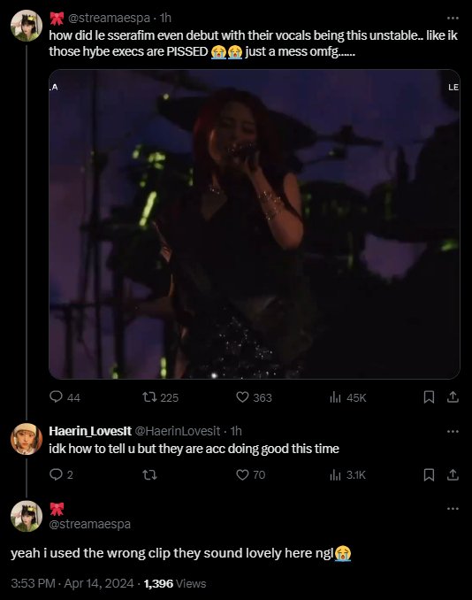 only seamonkeys think lessera can sing the gooks themselves disavowed them after their disastrous coachella stage. it cemented their fate as terrible singers and perma burned kpop . many such cases