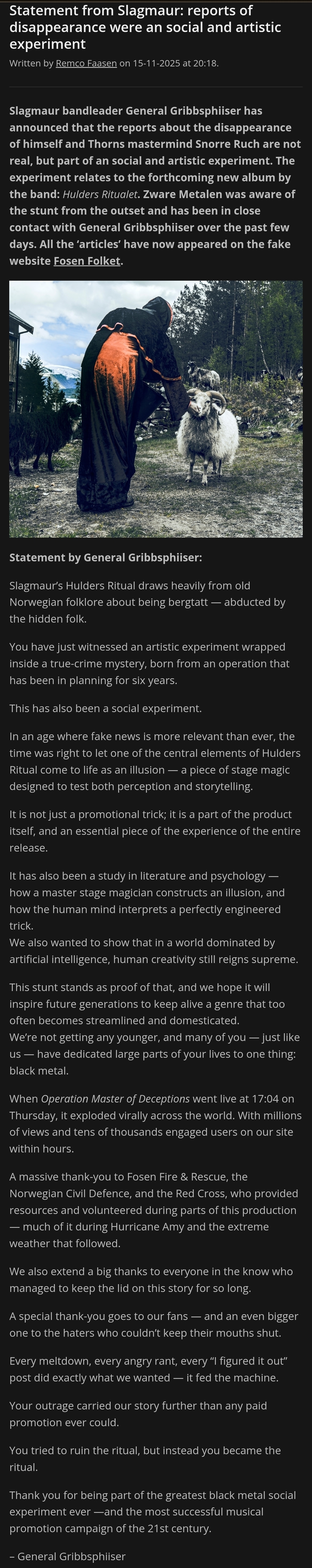 >it was a stunt What faggot sons of bitches. https://zwaremetalen.com/english/statement-from-slagmaur-reports-of-disappearance-were-an-artistic-experiment