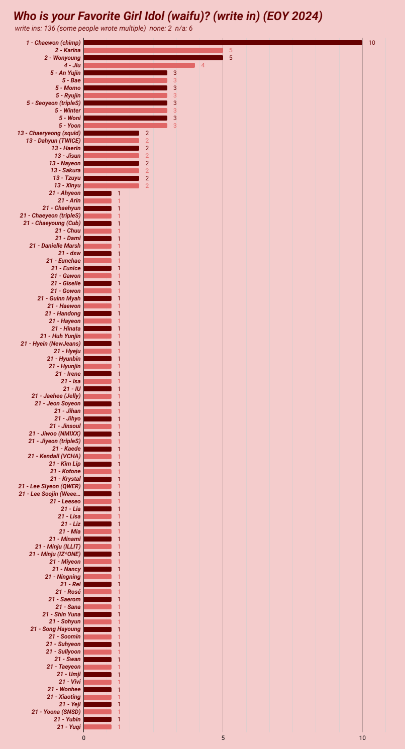 i can accept that chimp and karina are the top 2 but i don't think chimp double ups wonyoung