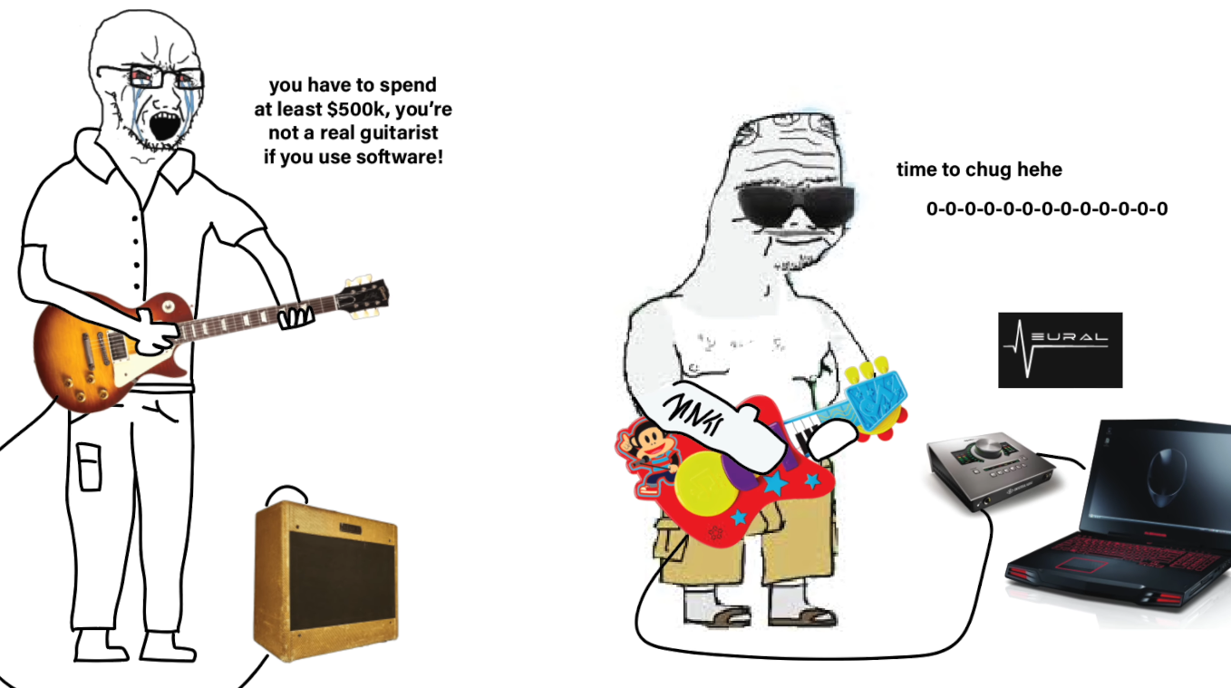 /gg/ flexes their guitars but hide the shit amps they play through. Vintage plexi anon, mesa boogie anon and soldano anon being the exceptions.