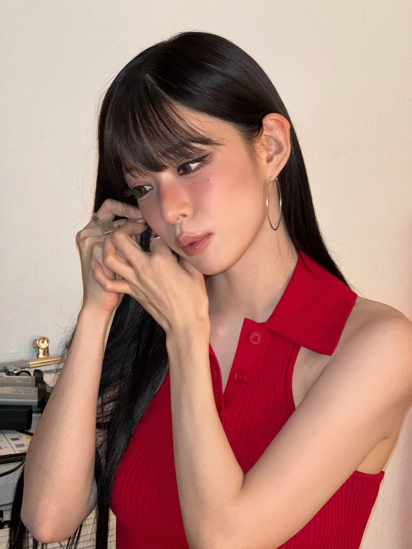shion snapping off her freshly done index fingernail flicking the tip