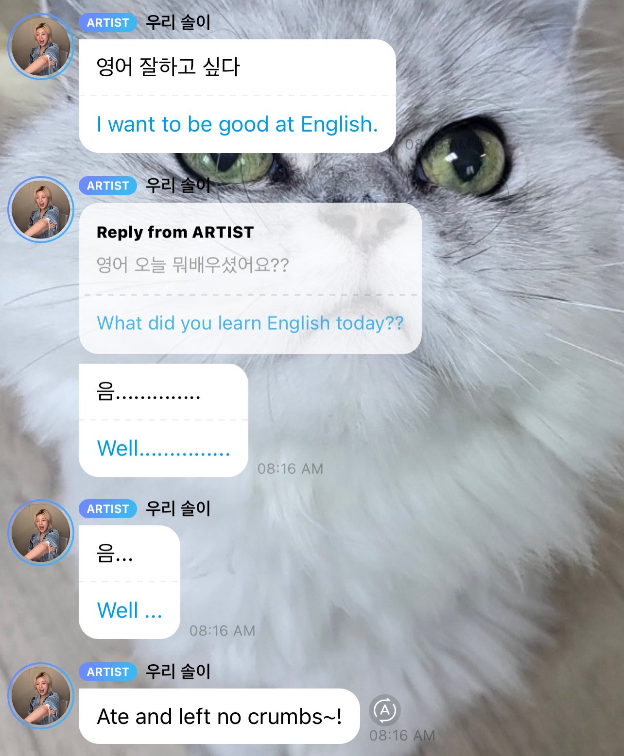 To think, Chaewon's all choky with excitement now that holidays are upon us and she can return home for a monthlong spell of animal abuse.